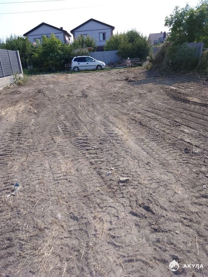 участок выровнен и обнесен забором.