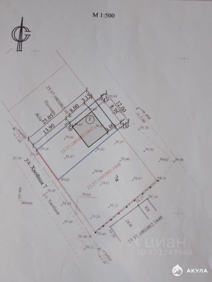 Фасад 12х 25, все центральные коммуникации проходят по меже.