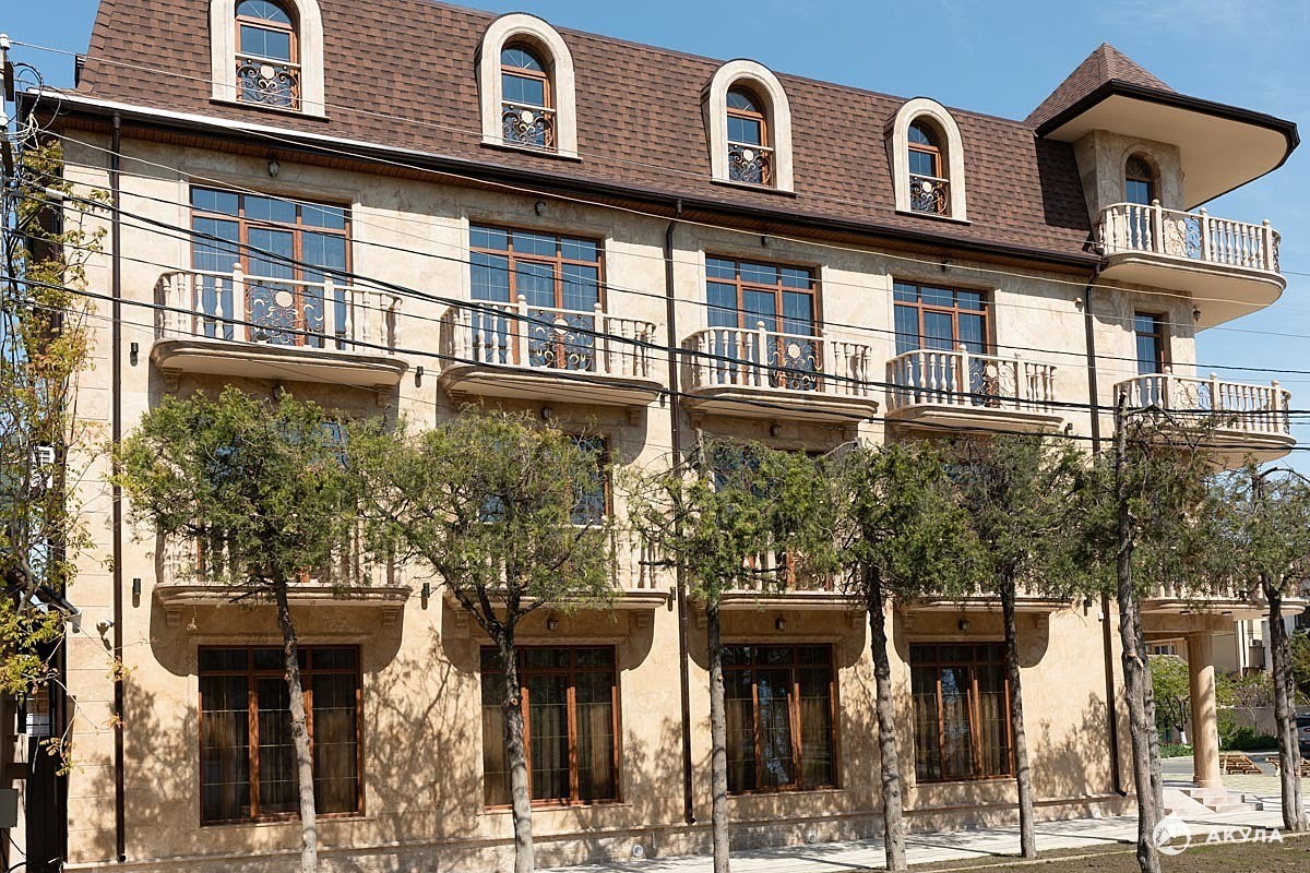 ВНИМАНИЕ!!! Гостиница построена на основании полного комплекта разрешительной документации. Введен комплекс в эксплуатацию в 2018 г. Фактически используется с мая 2019 г. Оснащен современной пожарной сигнализацией с голосовым оповещением, системой кондиционирования, автономной компьютеризированной системой газового отопления. Весь фасад выполнен с использованием природного камня. Используется ковка в интерьере, гранит, горный хрусталь, много живых цветов, профессиональное озеленение прилегающей территории. Парковка на 8 мест+гараж с автоматическими воротами на 1 автомобиль. Остекление трехслойное, с декоративными элементами.