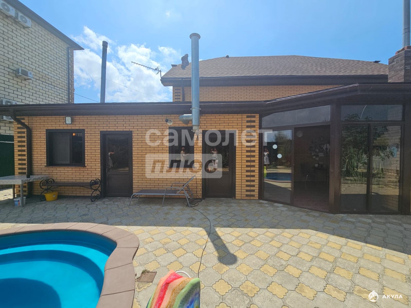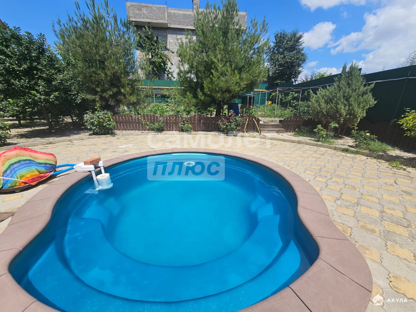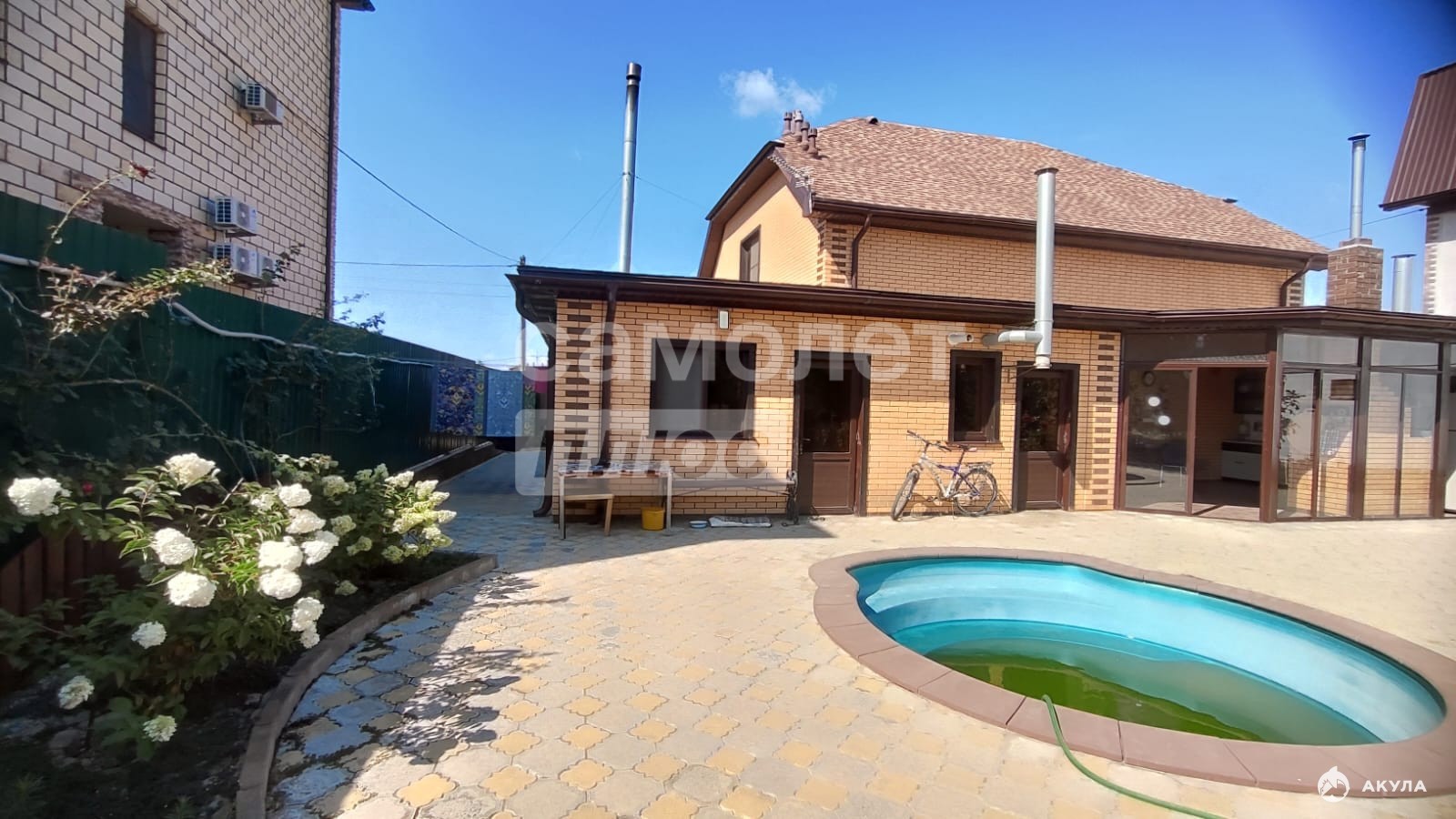 Двухэтажный коттедж с гаражом, баней, бассейном с системой фильтрации, погребом и технической комнатой (котел и резервуар для воды с системой фильтрации).