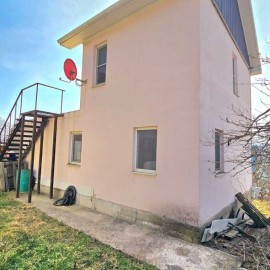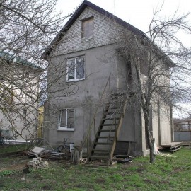 Объект №151215. Двухэтажный дом с мансардой. Стены шлакоблок и кирпич. Оштукатурен снаружи и внутри. Перекрытия между этажами железобетонные плиты. Крыша металлопрофиль. Выполнена предчистовая отделка. На второй этаж отдельный вход со стороны участка. Свет подключен....