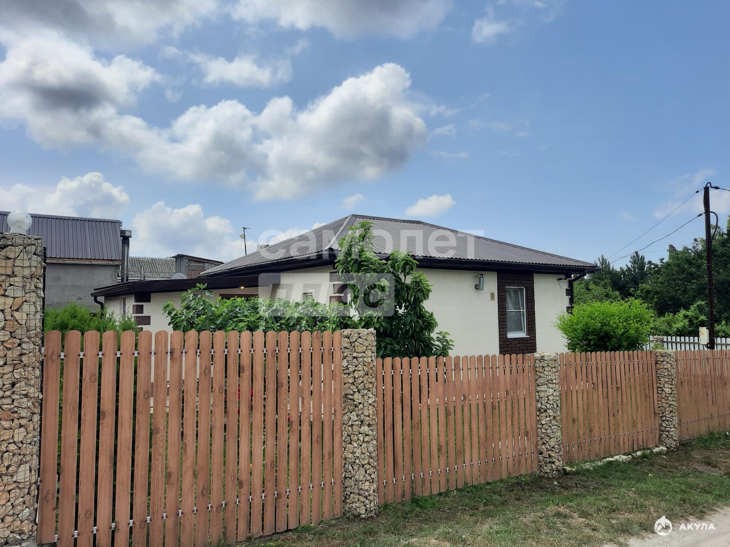 Участок: 5 соток правильной, ровной формы. Уже залита большая бетонная площадка для парковки двух автомобилей. Вас порадует молодой, но уже плодоносящий сад: две яблони, черешня, две вишни, персик, виноград и ароматная клубника.