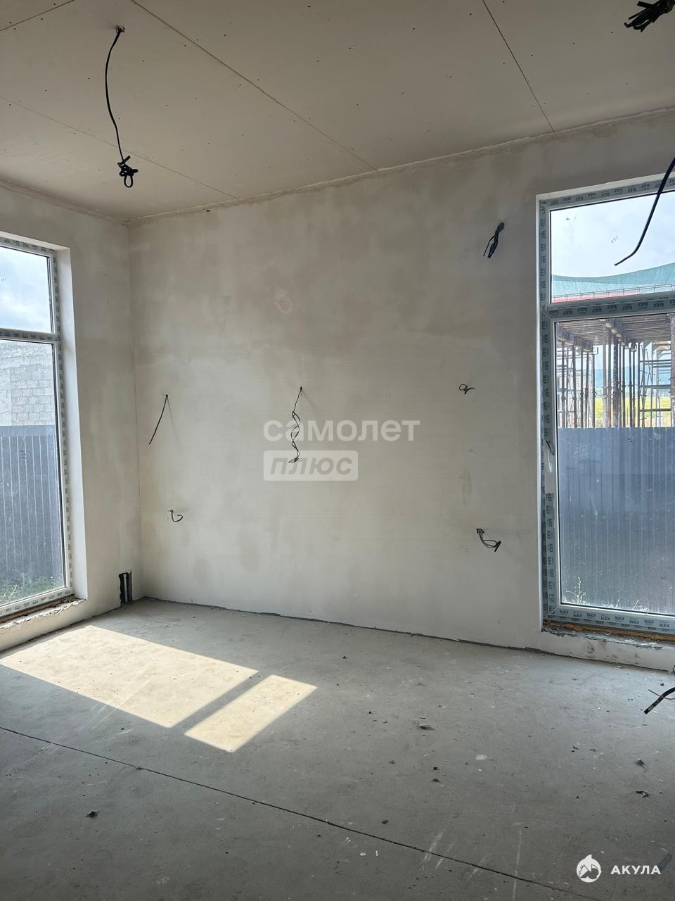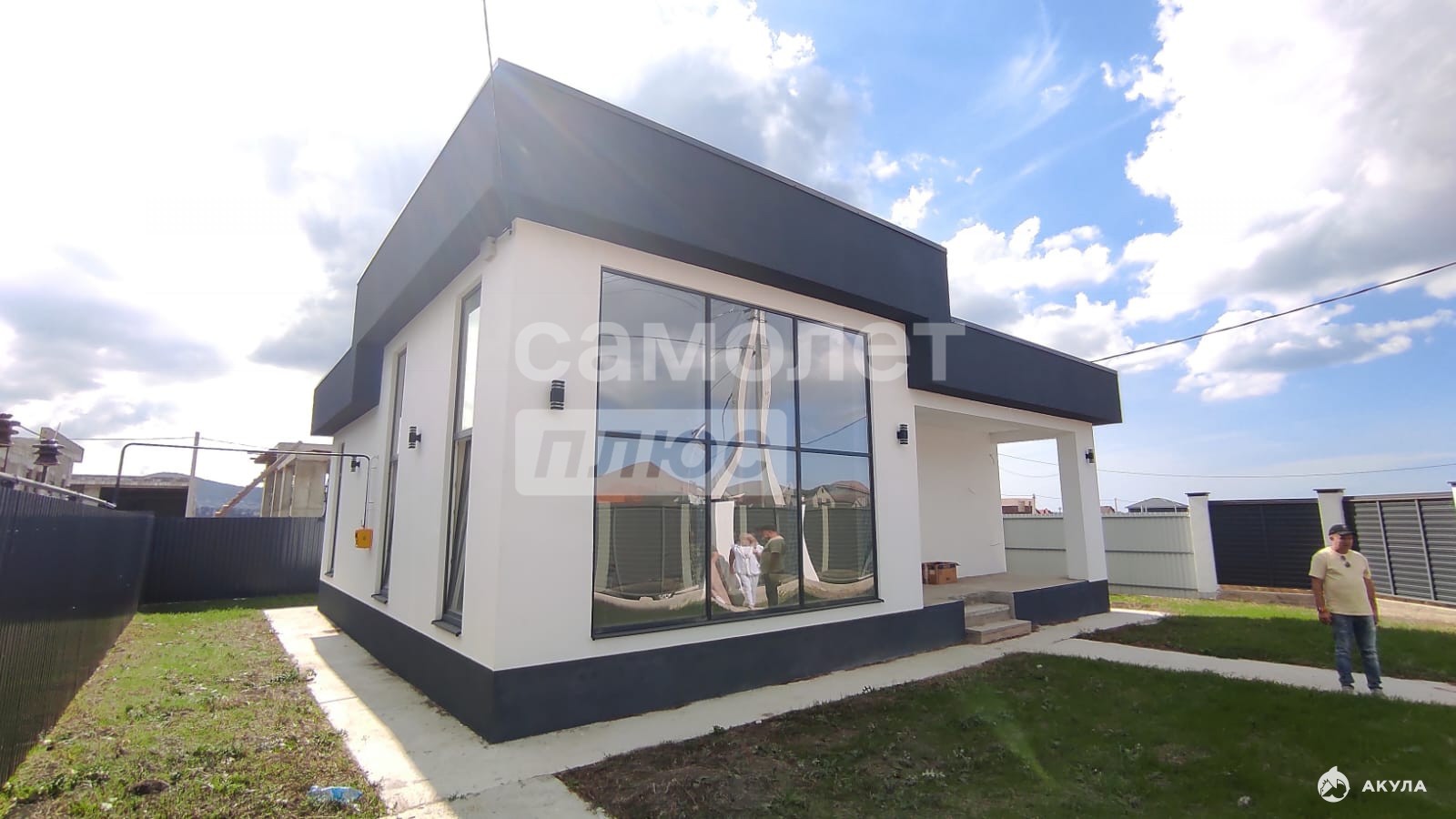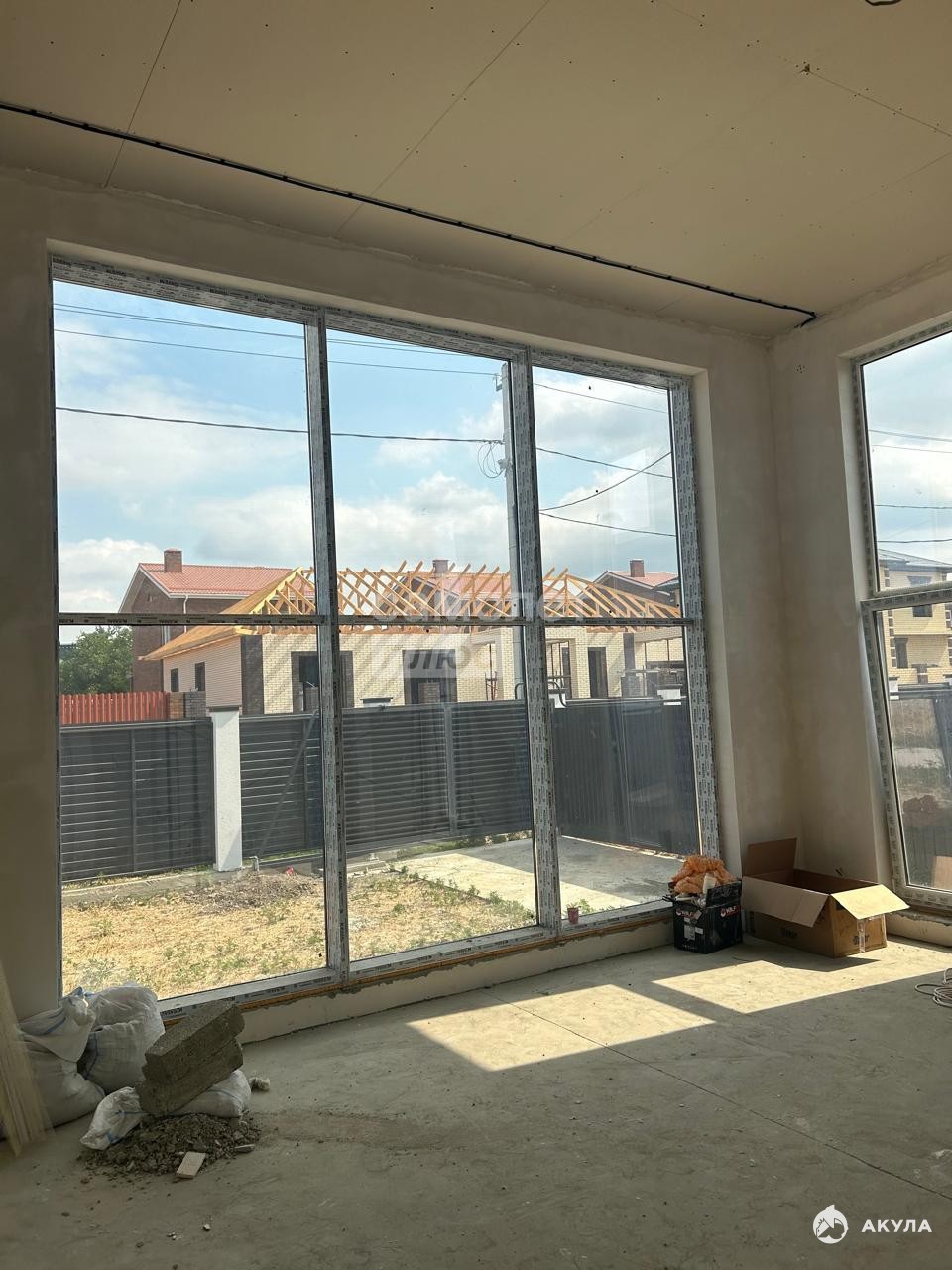 Дом от застройщика. Стиль ХайТек. В гостиной потолки 4, 5 метра и витражные окна.
