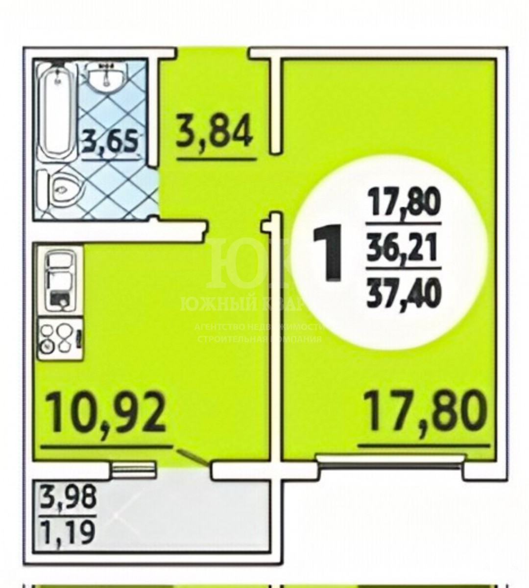 общая площадь квартиры: 40, 21 кв.м,