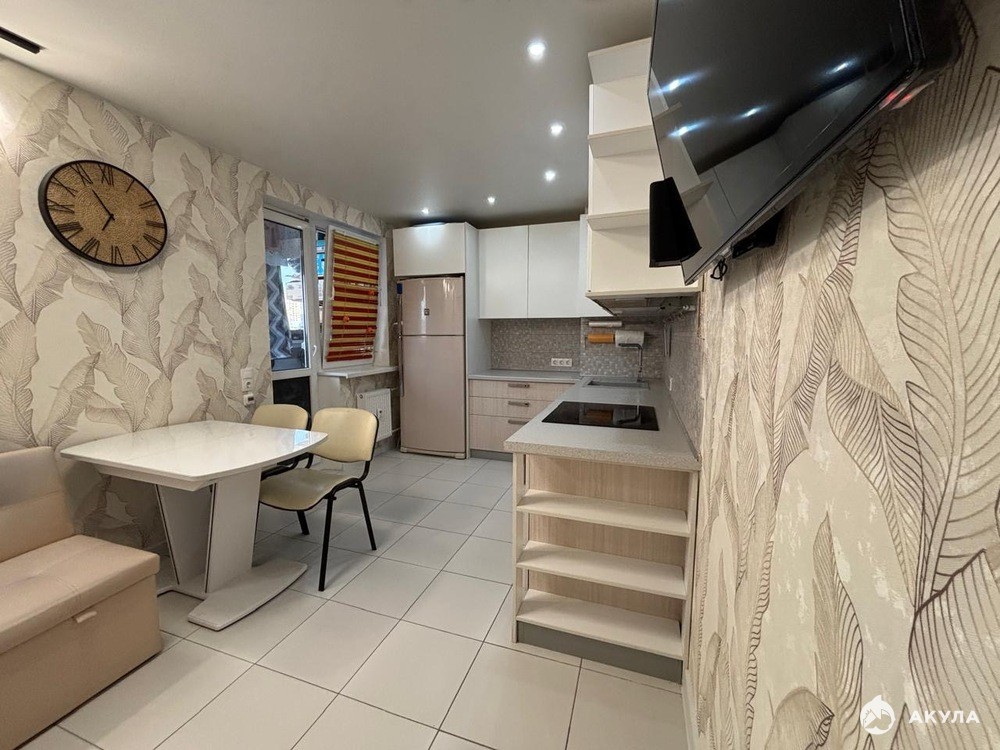 Квартира находится в спокойном районе курортного города, недалеко от крупного торгово-развлекательного центра и развитой инфраструктуры. Окна выходят на Кавказские горы, предлагая красивые виды и возможность наблюдать рассветы. В пешей доступности расположены школы, детские сады, парки и магазины.