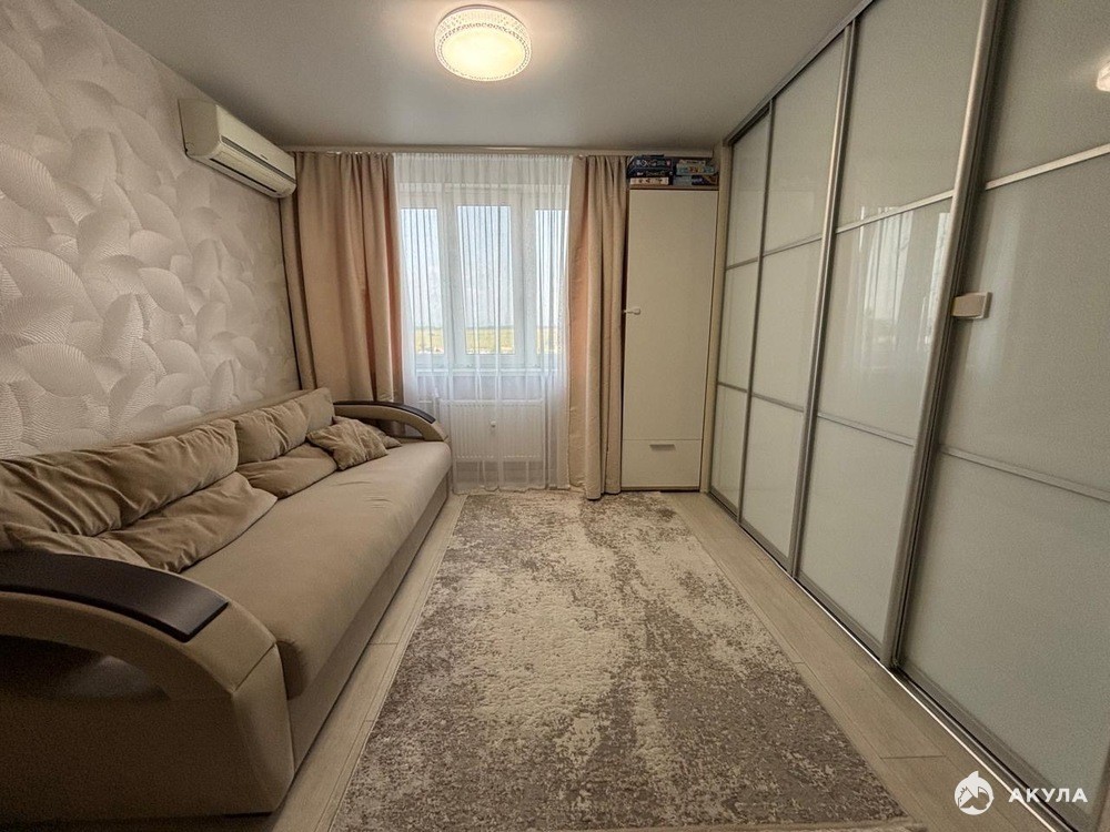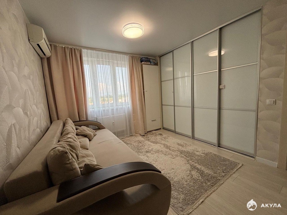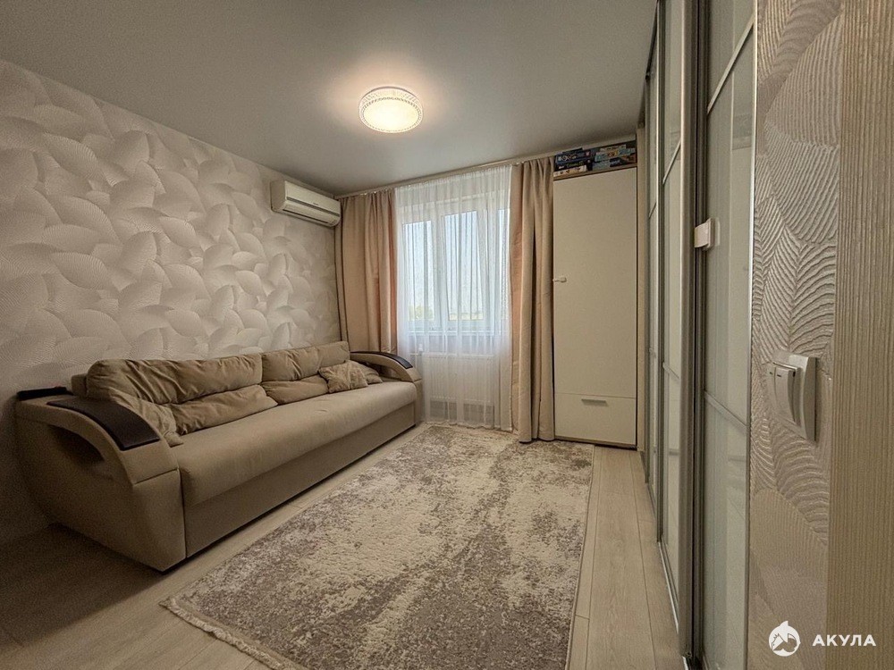 Внутри выполнен современный ремонт в светлых оттенках, есть теплый пол, тщательно продуманное освещение и богатая электросеть. Застекленный балкон утеплен и подготовлен для комфортного отдыха и проветривания.