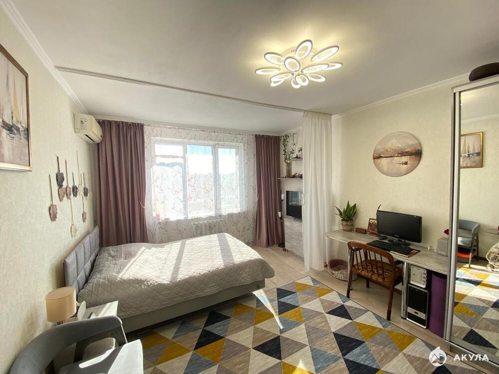 Объект №59548 Продается 1-комнатная квартира, 45 кв.м, с хорошим ремонтом на 9 этаже 10-этажного монолитного дома С видом во двор, застекленная лоджия, центральное отопление Сдача: 2012 год