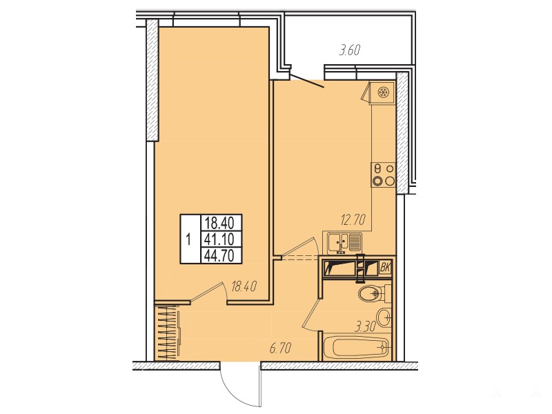 Общая площадь-45.10м2