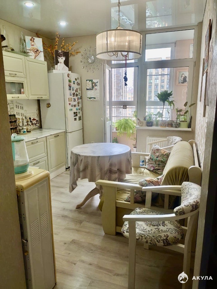 Кухня: Уютная кухня с выходом на застеклённую лоджию — идеальное место для утреннего кофе и отдыха.