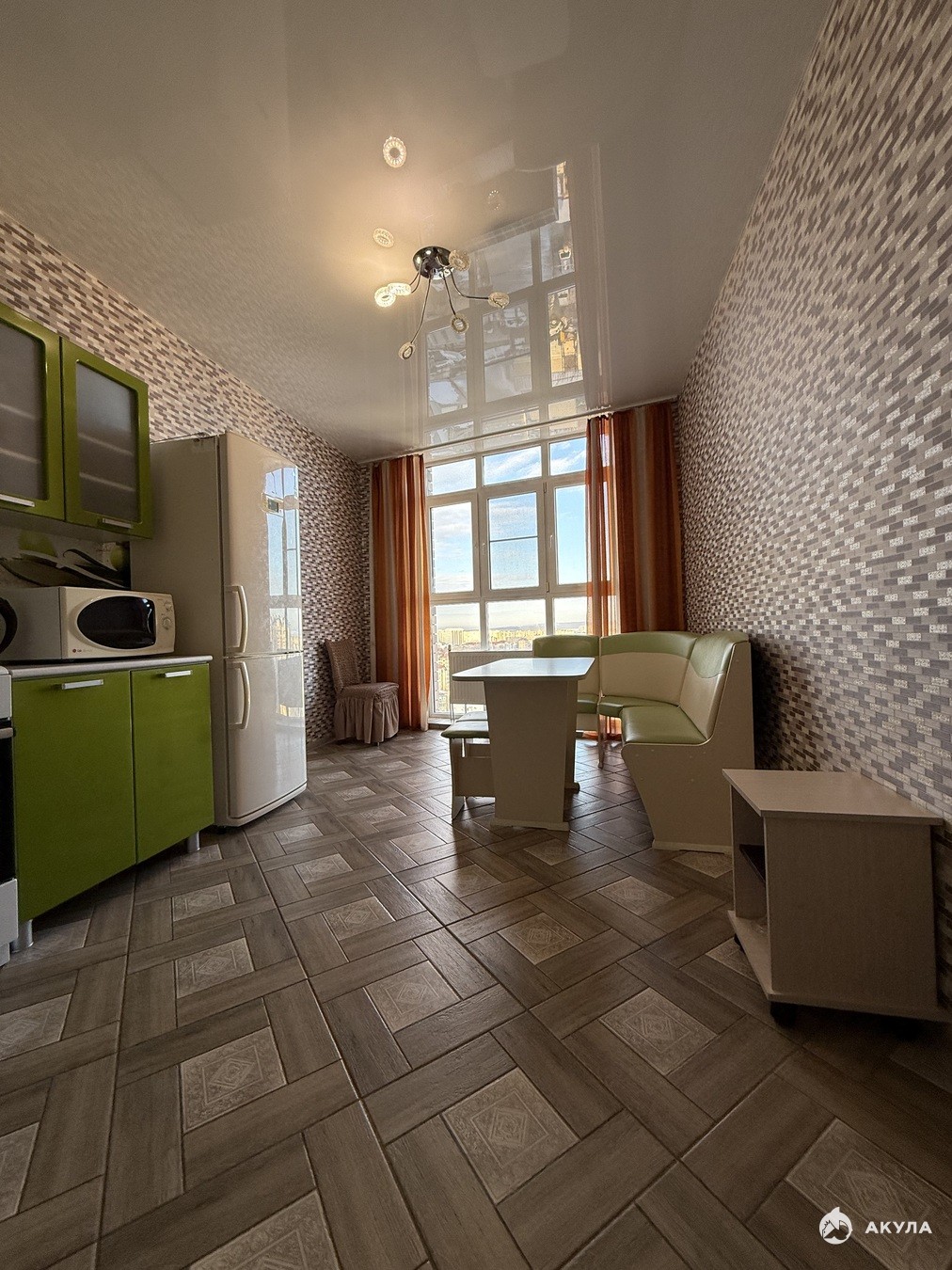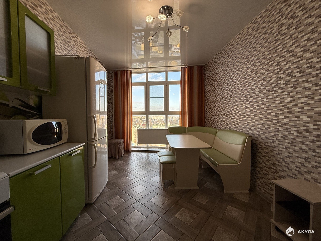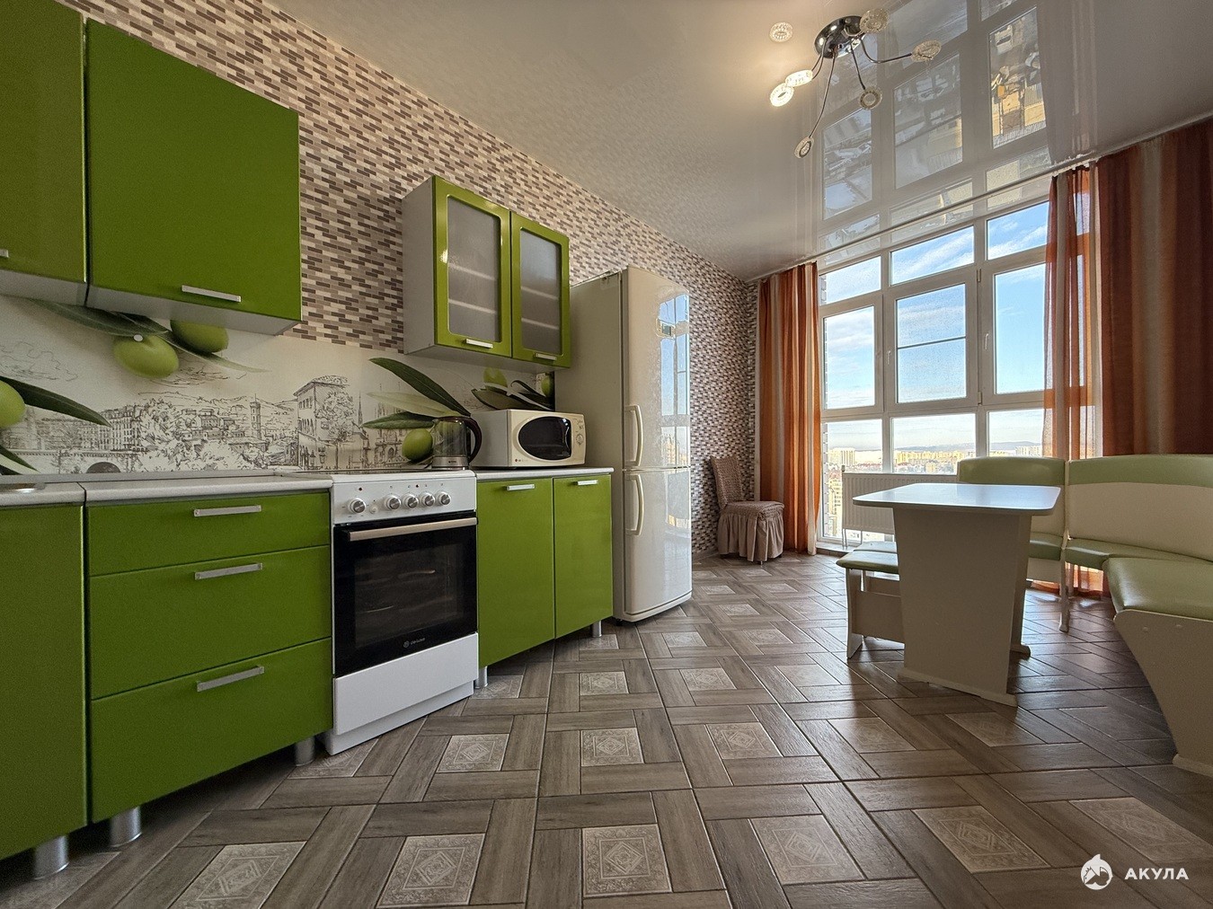 Окна выходят на город.