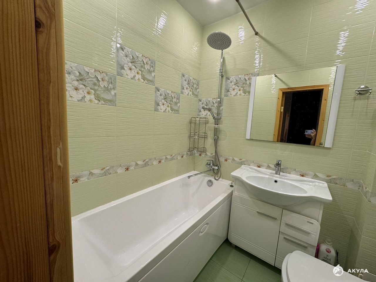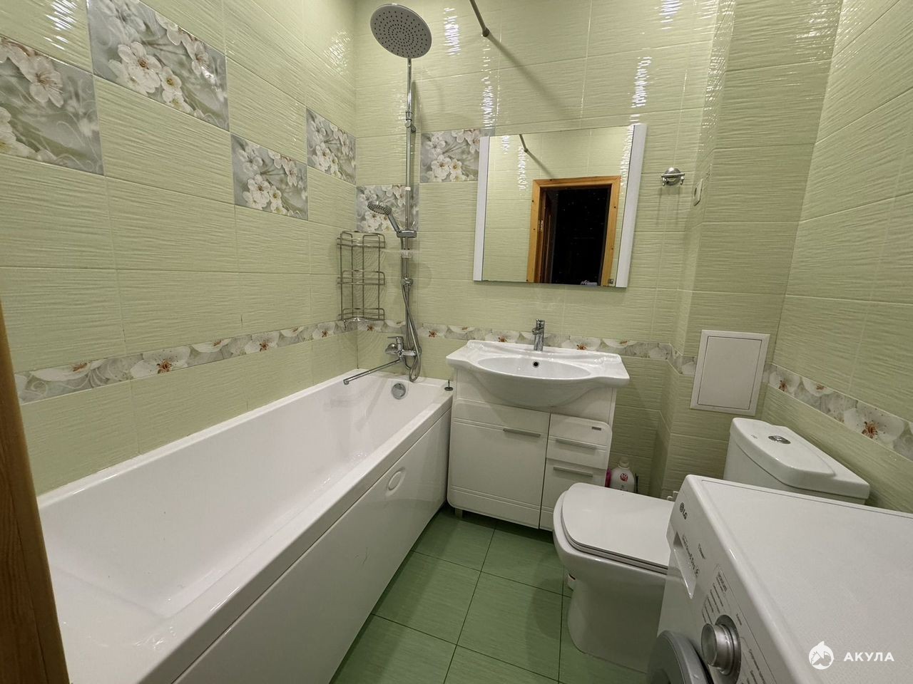 В ванной комнате установлен теплый пол.