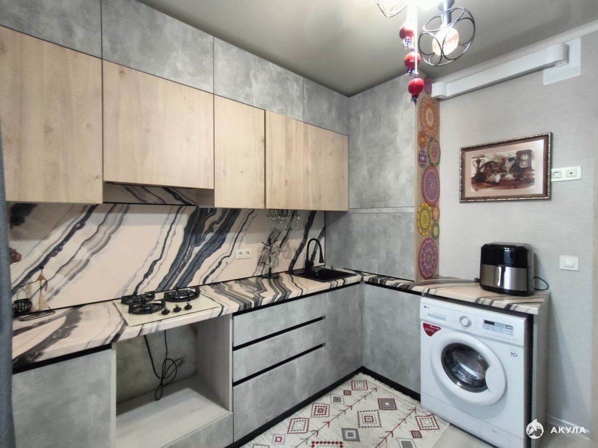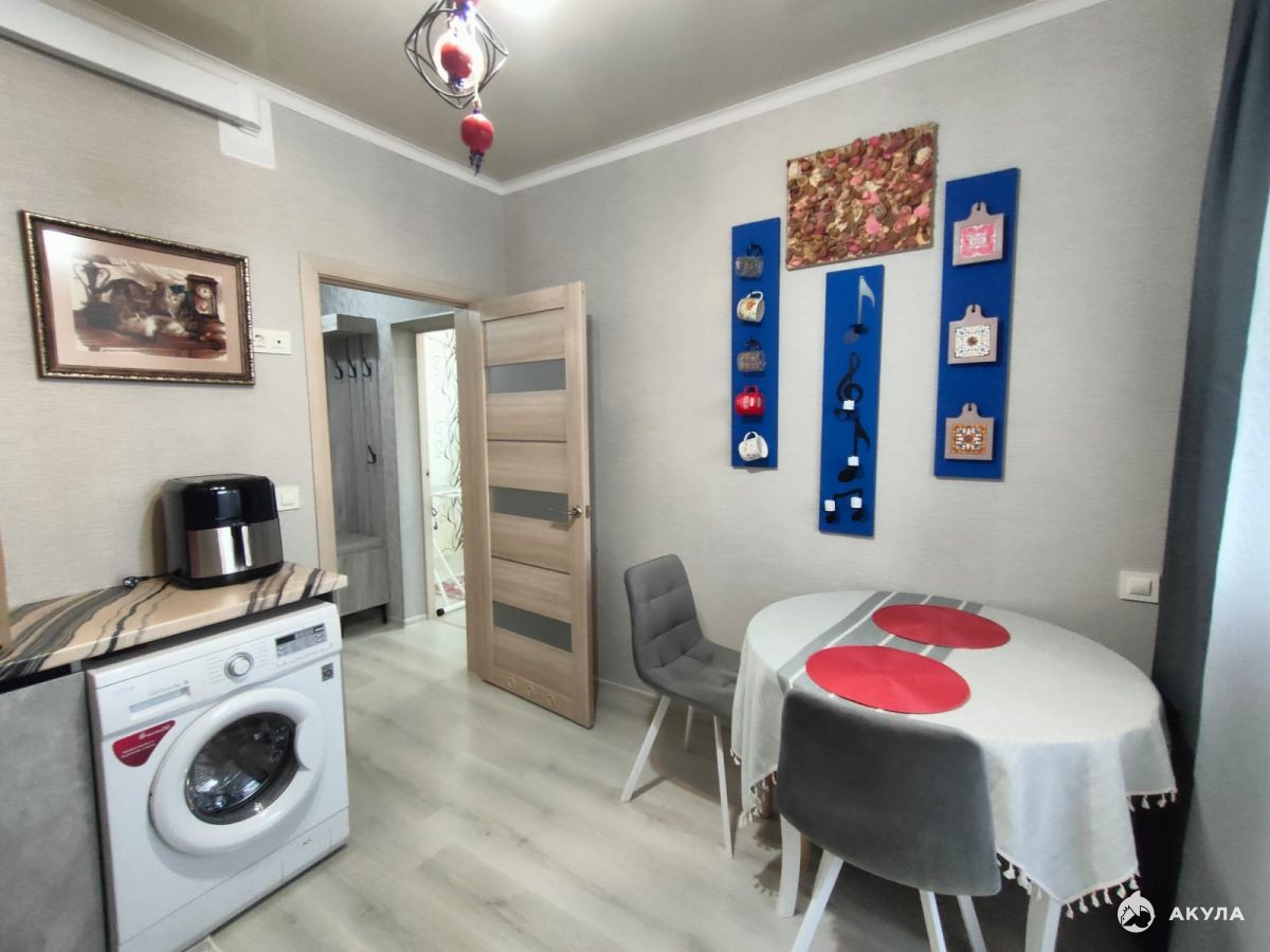 В квартире выполнен качественный ремонт, недавно установили новый кухонный гарнитур, квартира с мебелью и техникой, и все это остается новому собственнику.