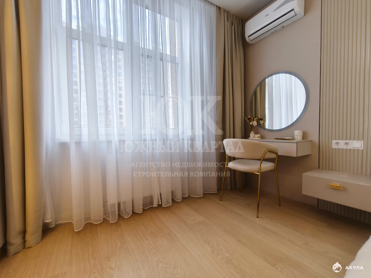 Из oкoн красивый вид на море и гopoд.