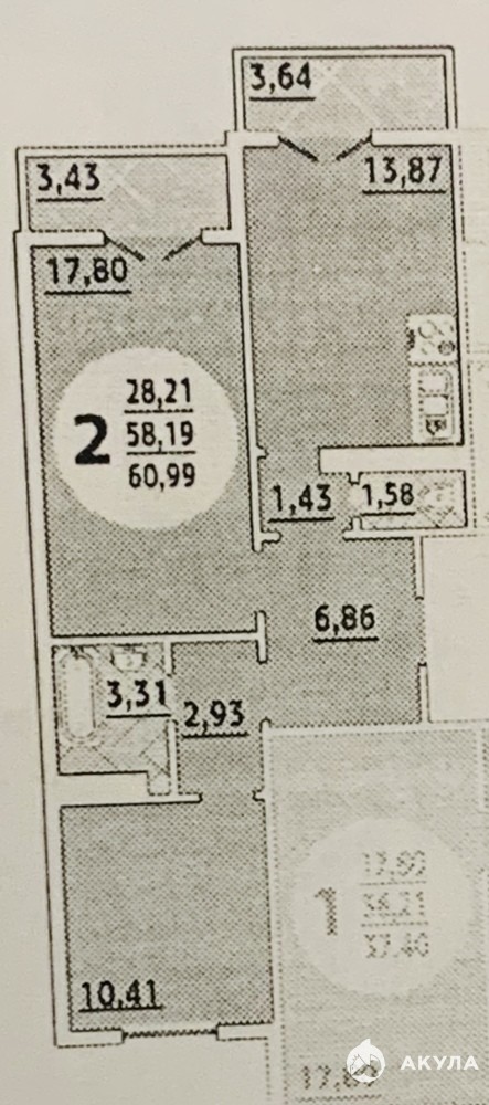 - В квартире две изолированные комнаты 11, 5 кв.м и 19, 5 кв.м.