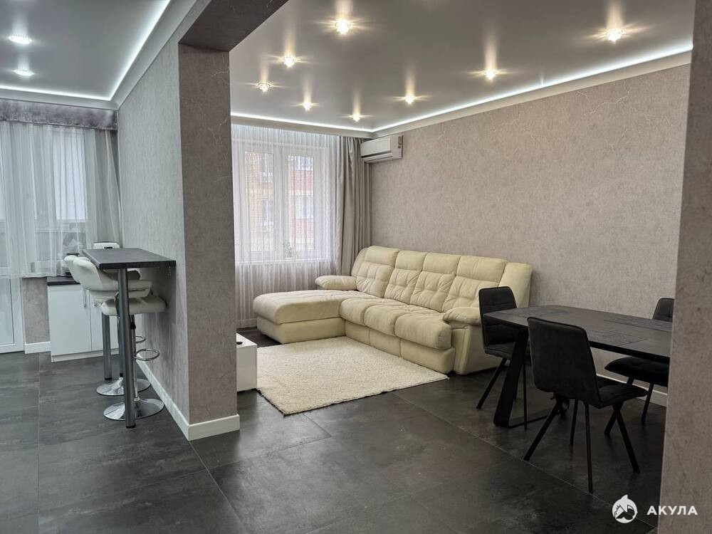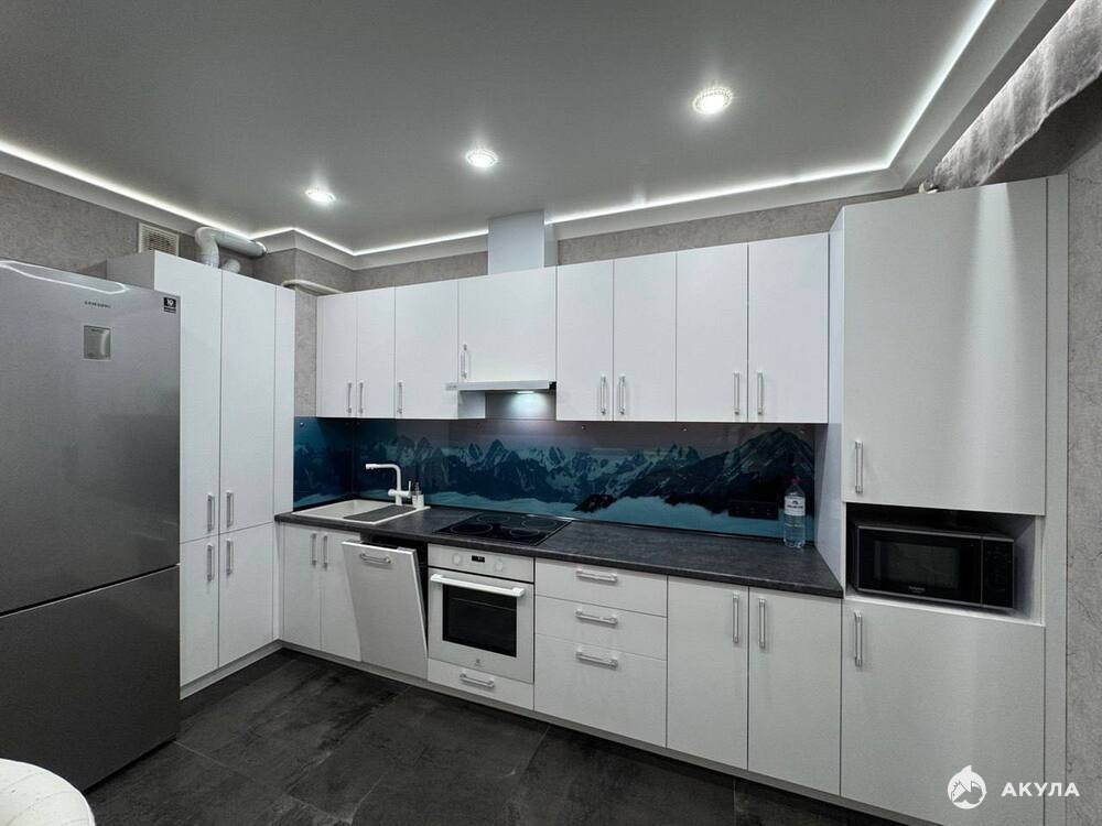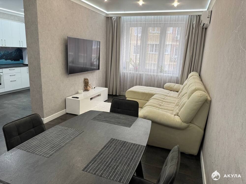 Объект №50032 Прoдаeтcя пpосторнaя квapтиpa, (pаспашонкa), c качественным cовременным ремoнтoм. Укомплектована пpевocходной мебелью и качественной дорогой техникой. В квартире остается полностью всё - в гостиной диван сделанный на заказ из антивандальной ткани (разбирается в 2 спальных места), лакированная тумба под телевизором, обеденный стол (раздвигается на 6 персон), 4 стула, 2 барных стула, два жк телевизора диагональю 65см и 55см, стиральная машина, 2 встроенных шкафа купе, письменный детский стол, комплект 2х спальная кровать в спальне с тумбами, большой 2х камерный холодильник, посудомоечная машина, кухонный гарнитур, индукционная варочная панель и духовой встроенный шкаф, прихожая. Установлен фильтр с обратным осмосом (всегда очищенная питьевая вода из крана). В квартире сделана шумоизоляция ( соседей не услышите никогда). Индивидуальное отопление и горячее водоснабжение (значительная экономия по коммунальным платежам). В коридоре, гостинной, кухне, в сан.узлах и в душевой сделан водянной теплый пол ( с отдельными контурами на каждое помещение). Балкон утеплен, полностью отделан декоративной штукатуркой, так же сделан теплый пол. Полностью по всей квартире контурная подсветка. Два отдельных сан.узла в спальне и прихожей (с гигиеническим душем), мастер спальня со своим отдельным сан.узлом, просторная затемненная душевая из черного стекла.