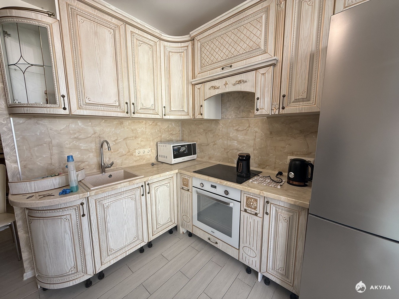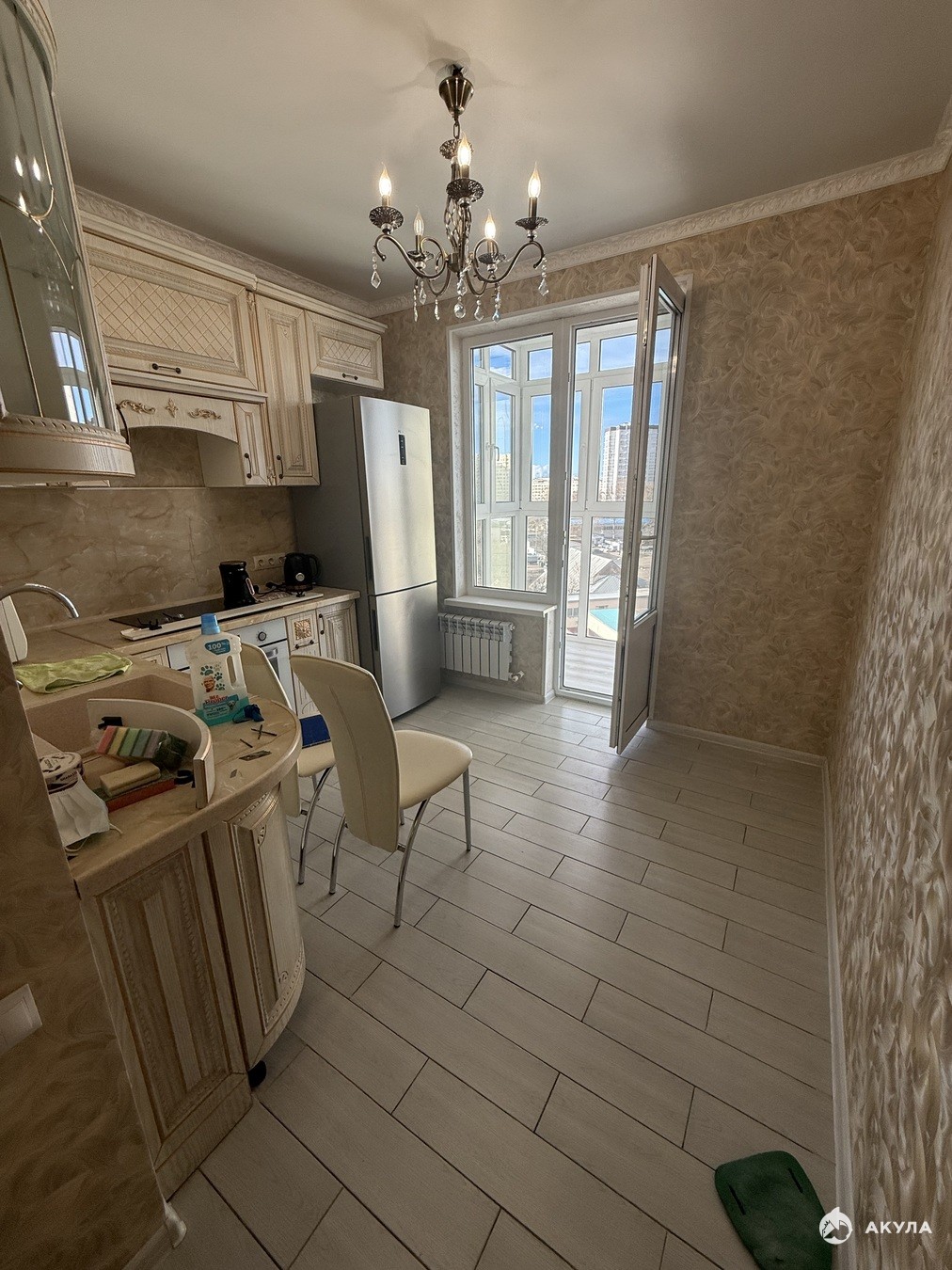 В квартире ремонт , установлен кух гарнитур, холодильник. Несколько сплит систем. Панорамная лоджия - выход из кухни и спальни