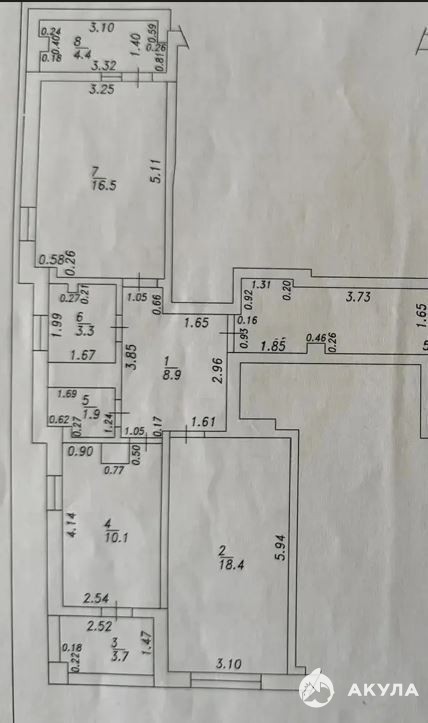 Комнаты: 16, 5 м² и 18, 4 м² (распашонка)