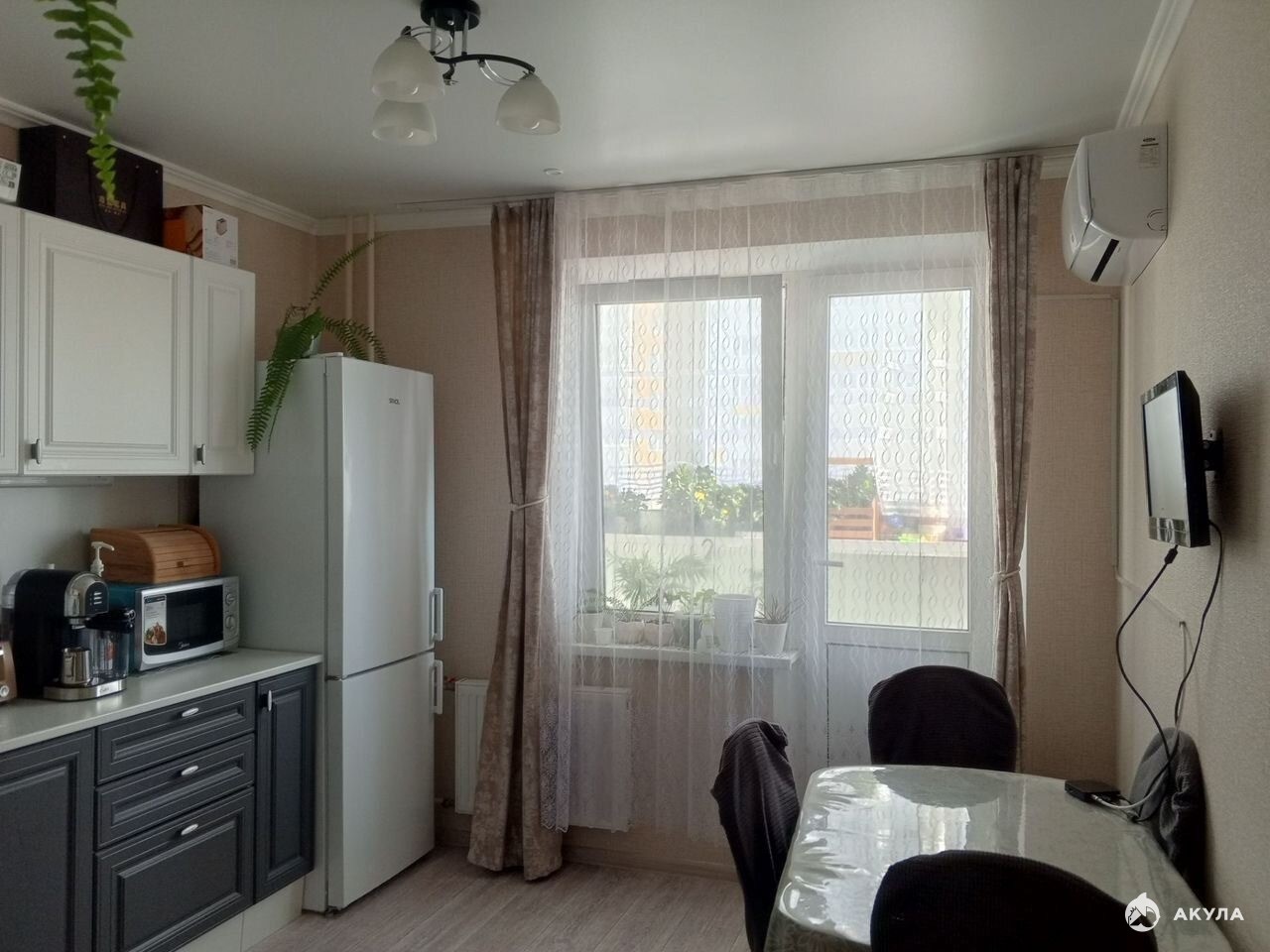 В квартире установлен кухонный гарнитур, также установлены фильтры на воду. Есть 2 балкона, где можно сделать зону отдыха или рабочий кабинет. В комнатах и на кухне - кондиционеры. Окна выходят во двор.