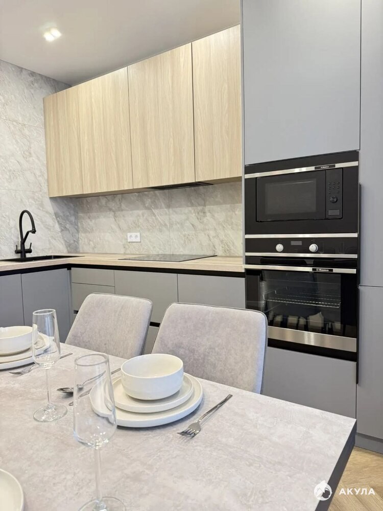 Кухонный гарнитур с качественными АGТ-фасадами, ручками GОLА и премиум фурнитурой.
