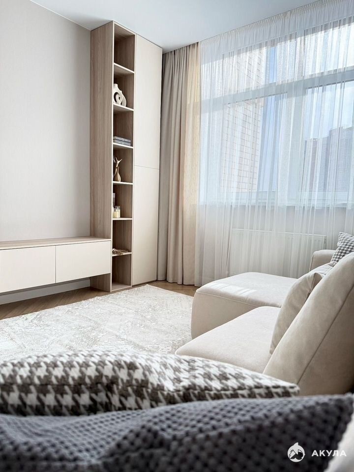 Ремонт выполнен из качественных, дорогостоящих материалов. В санузле широкоформатный керамогранит 120*60. Кухонный гарнитур с качественными АGТ-фасадами, ручками GОLА и премиум фурнитурой.