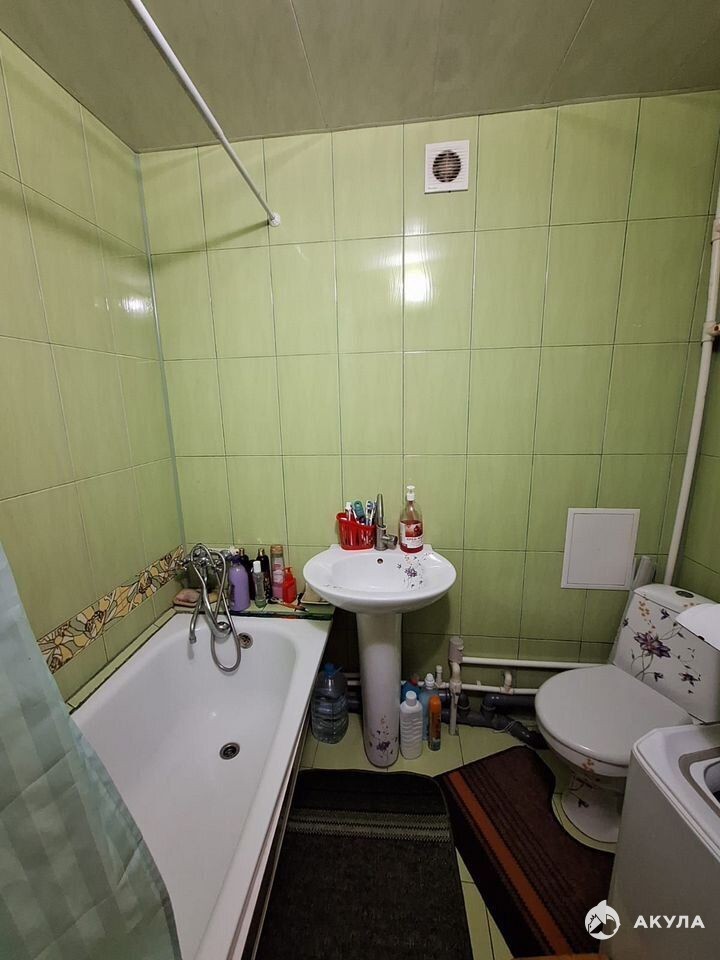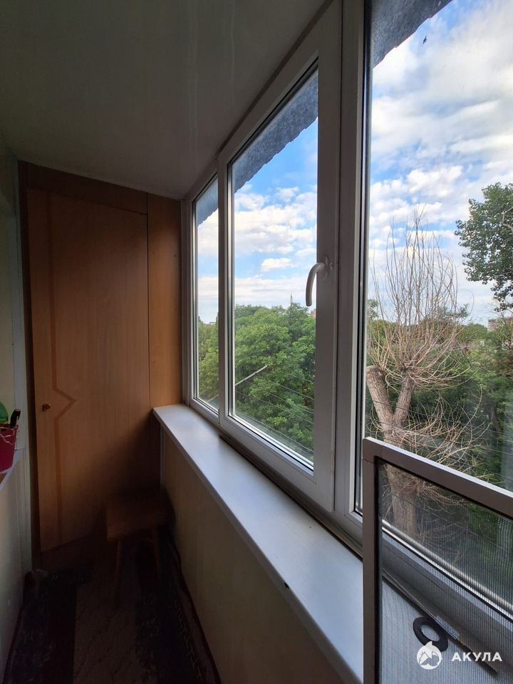 Санузел в плитке. Просторный балкон с дополнительным местом для хранения вещей.