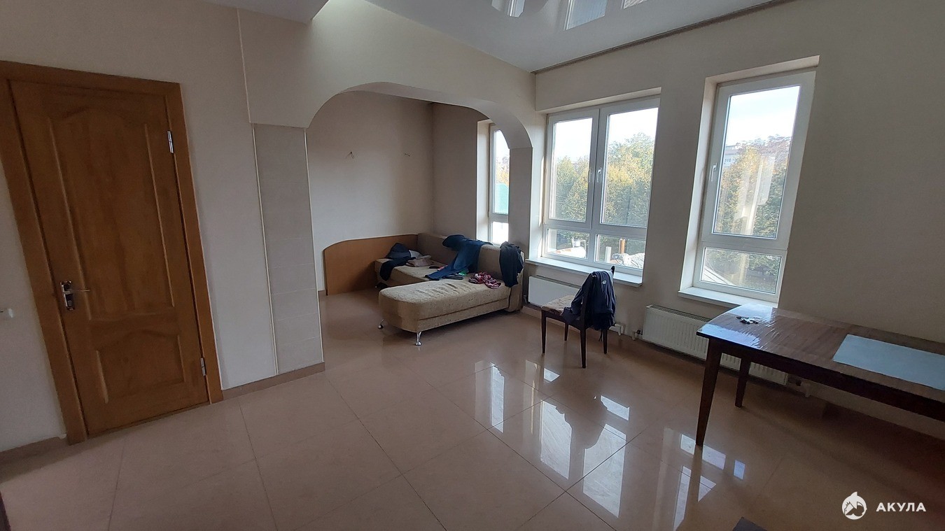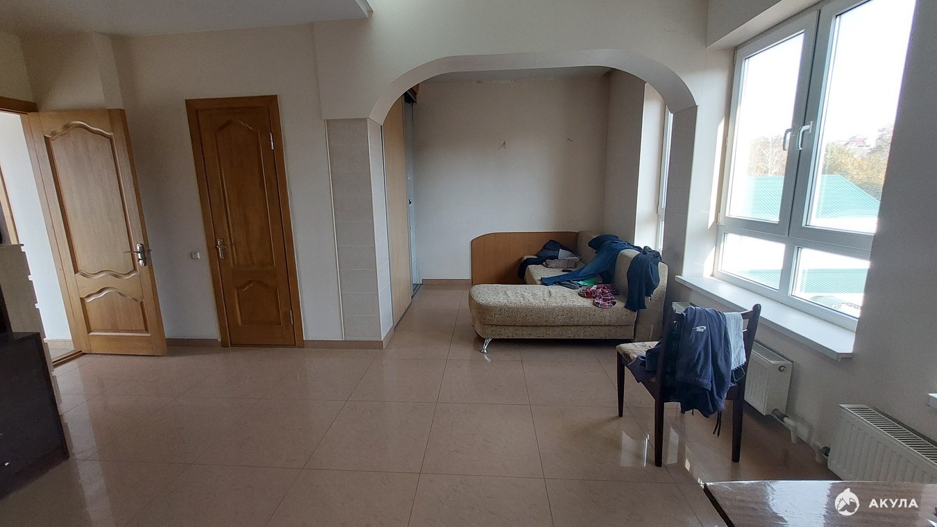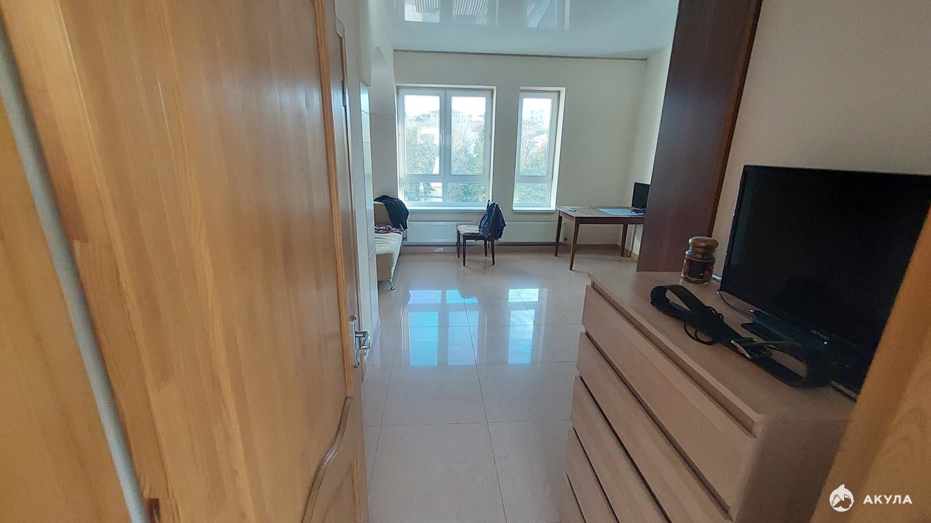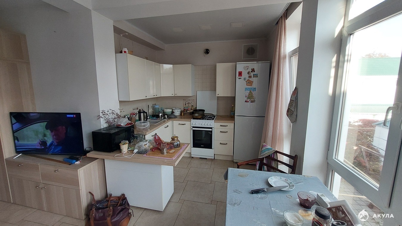 Квартира двухуровневая, большая, и с хорошим ремонтом. Есть выход на крышу-террасу ( 3-ий этаж), с прекрасным видом на город и море.