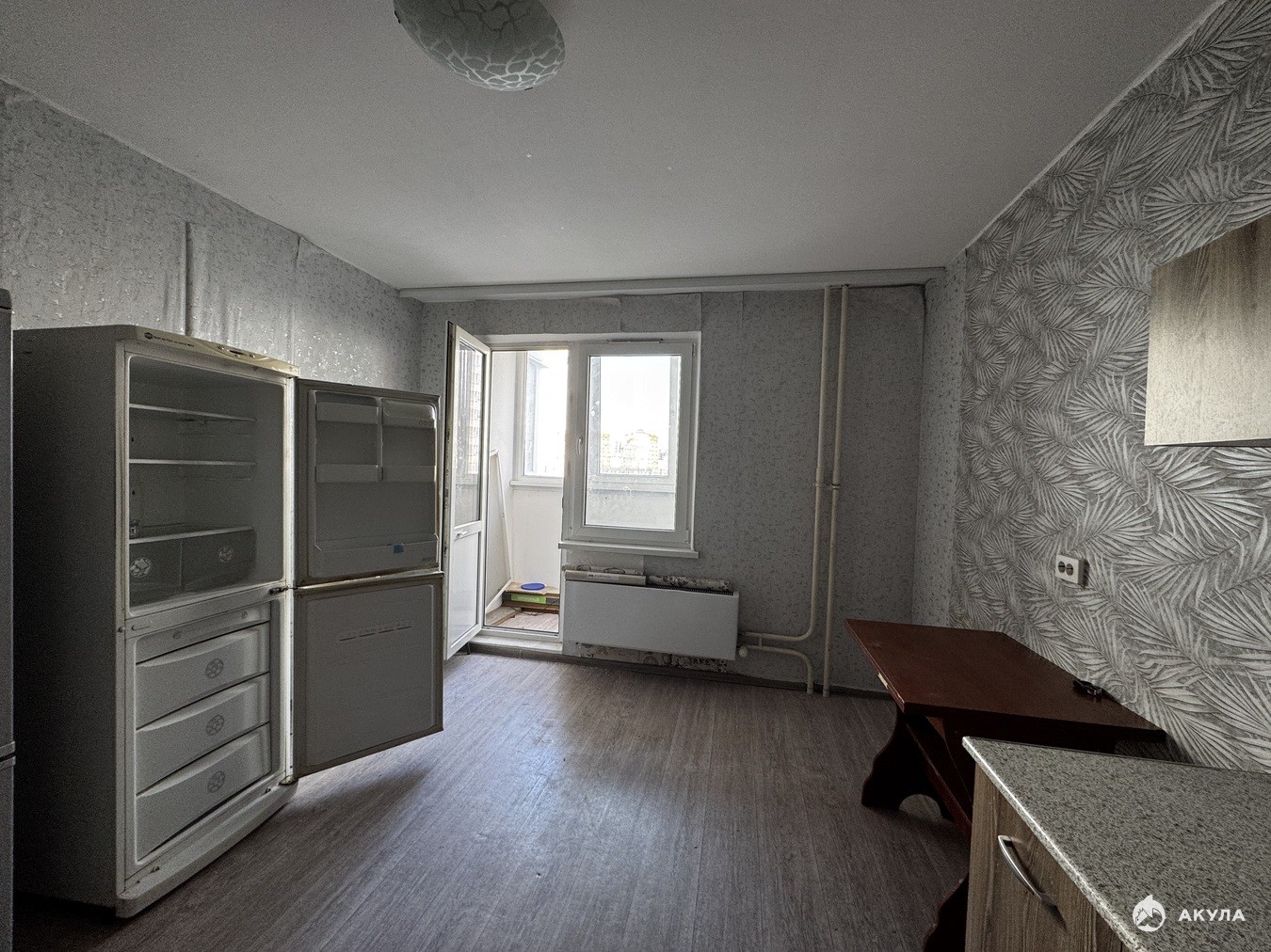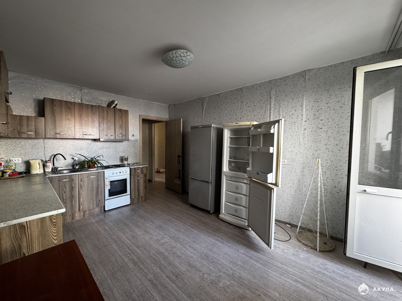 Квартира с косметическим ремонтом. Остаётся кухонный гарнитур, холодильни ки с тиральная машинка. Три балкона. Окна выходят во двор и на улицу Ленина.