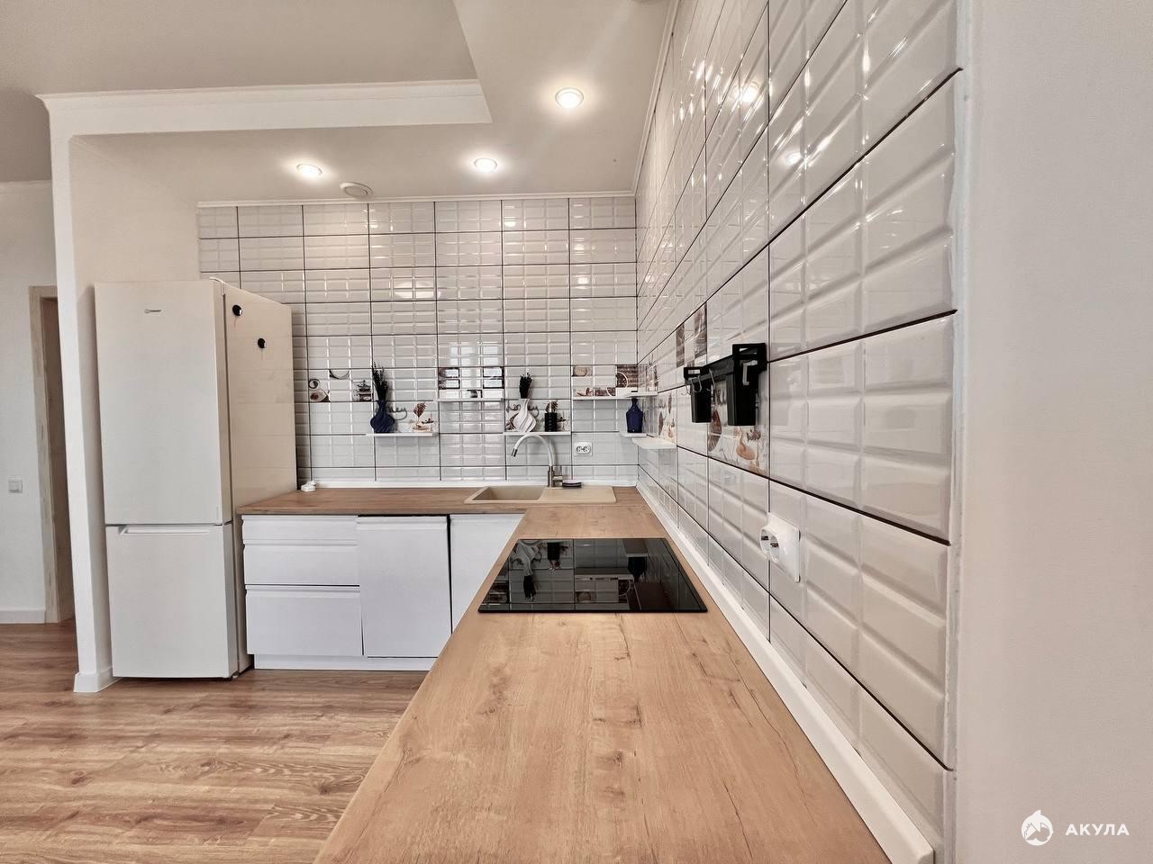 В квартире качественный евро ремонт, в светлых тонах.