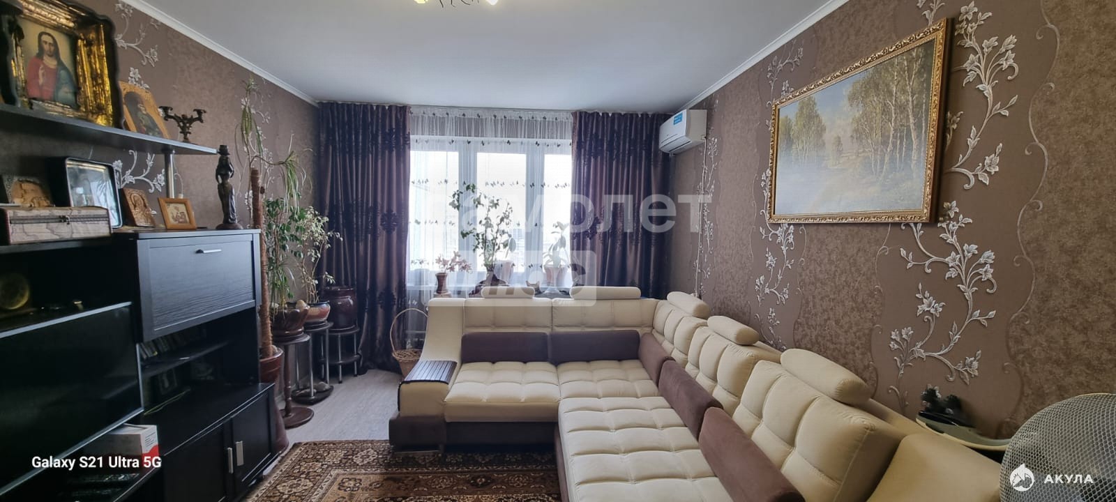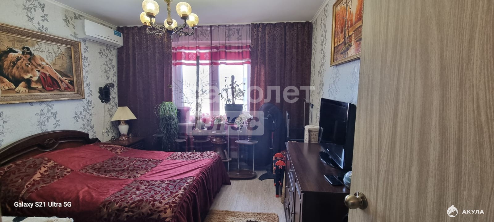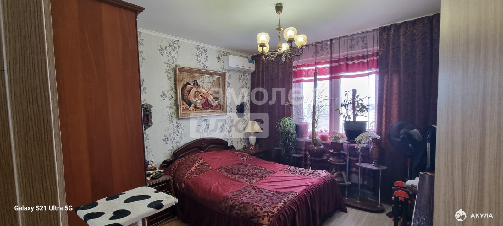 - в комнате - шкаф, кровать, диван, ЖК/ТВ, кондиционер,
