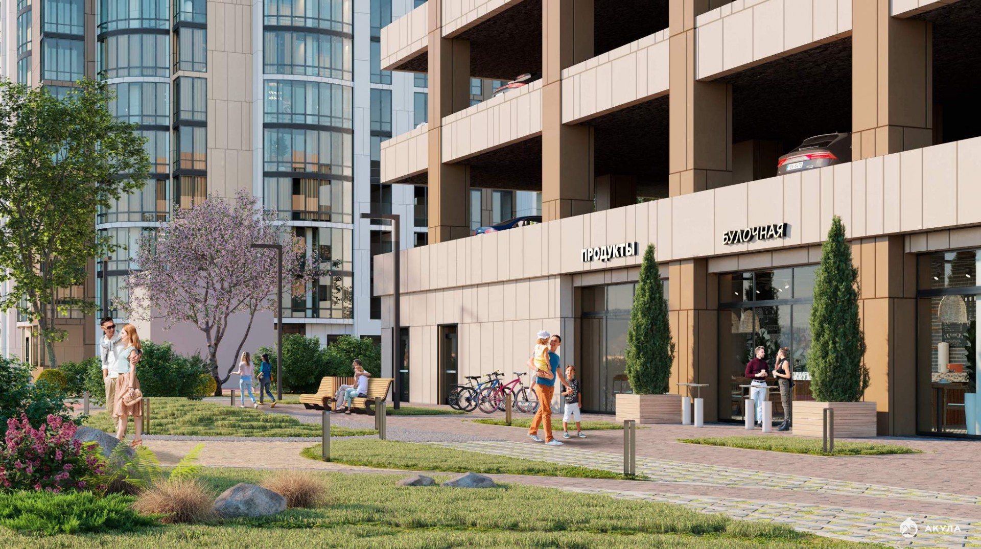 Отдельная многоуровневая парковка, парковка охраняется. Обеспечение безопасности: видеонаблюдение. Инфраструктура: детские площадки, спортивные площадки, места для отдыха.