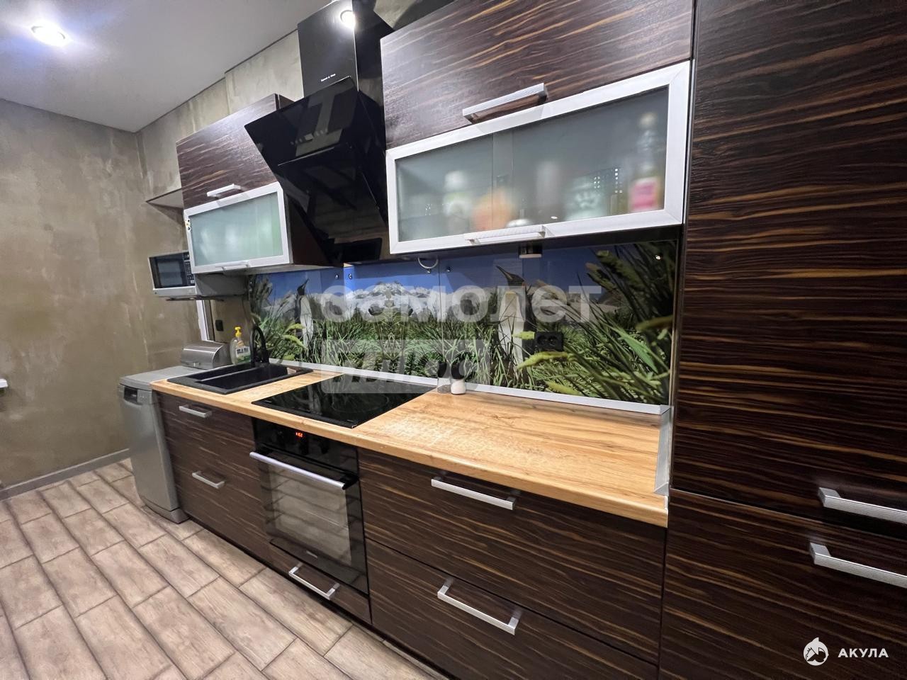 Остается: стильный кухонный гарнитур, вытяжка, электрическая варочная панель, вместительный шкаф-купе в комнате. Проведен интернет и кабельное ТВ.