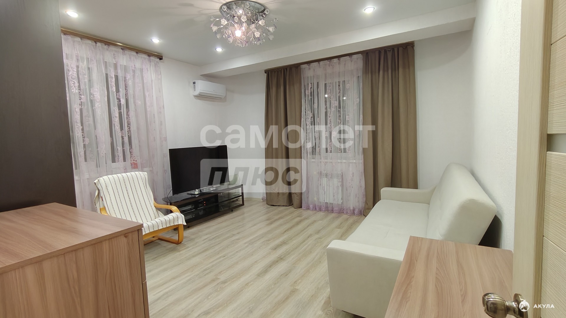 В квартире выполнен косметический ремонт в светлых тонах. Частично остается мебель и техника.