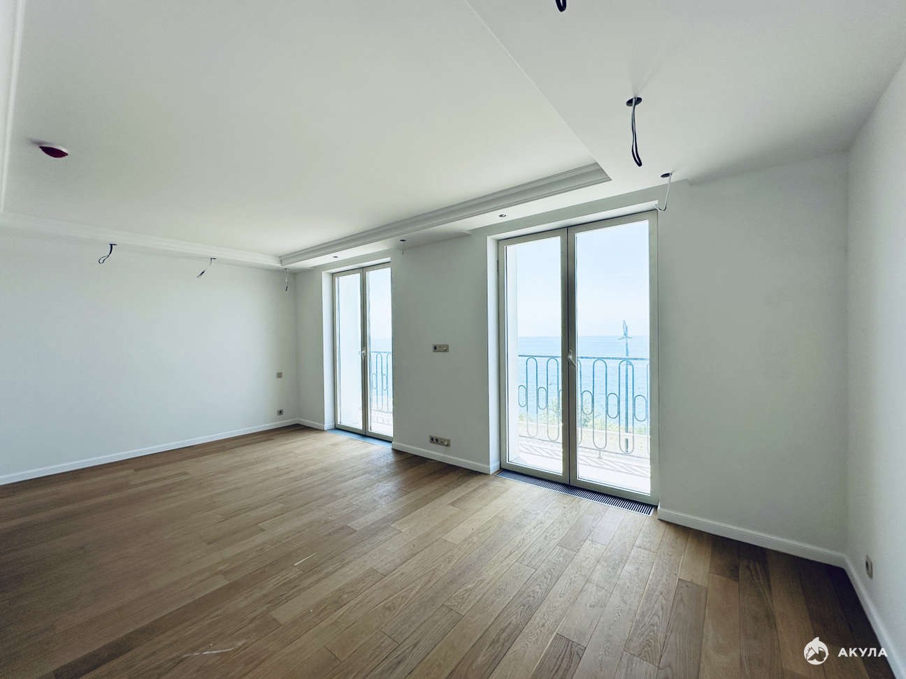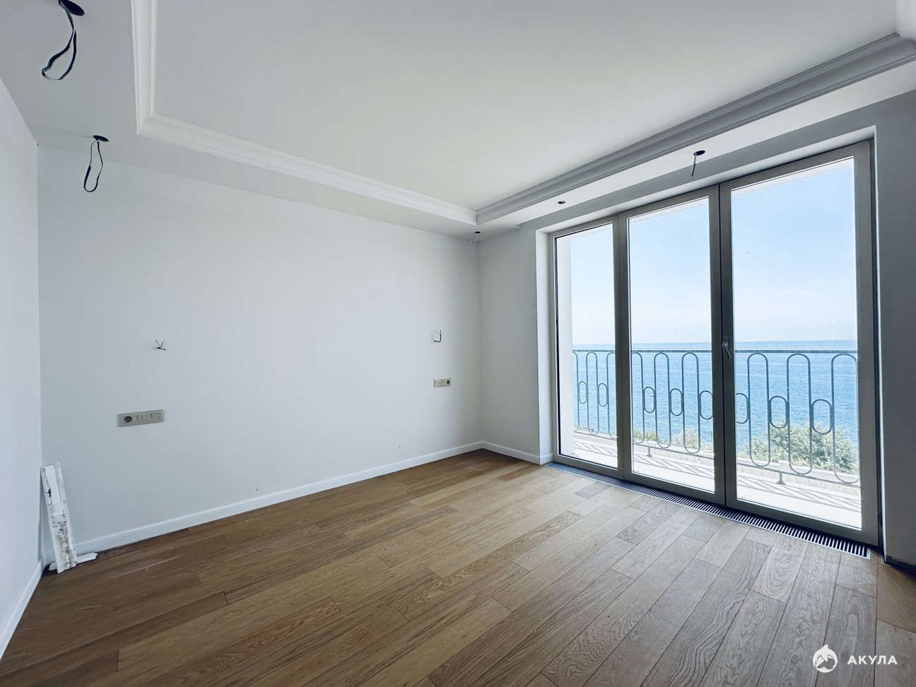 Общая площадь 67, 4 кв. м просторная кухня-гостиная 22, 68 кв. м спальня - 17, 53 кв.м, две туалетных комнаты - 4, 19кв.м и 4, 01 кв.м, также имеется две гардеробных комнаты - 25, 69 и 2, 48 кв.м и три балкона с видом на море.
