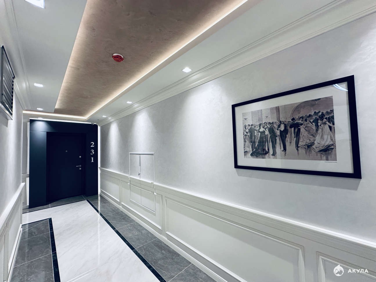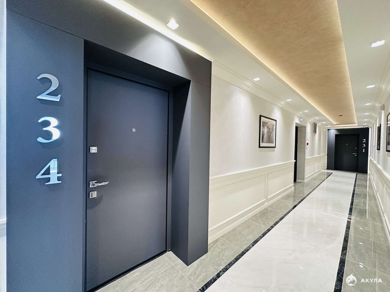 На входе консьерж за стойкой в роскошном лобби с элементами золота в отделке и мягкими креслами. Коридоры комплекса украшают многоуровневые потолки с подсветкой и репродукции картин на стенах. В распоряжении 4 лестничные клетки и 4 бесшумных грузопассажирских лифта. Комплекс круглогодичного проживания.