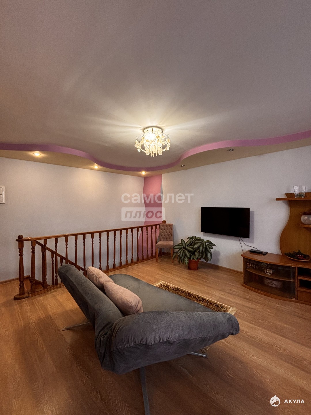 На минус первом находится две изолированные спальни, большая гардеробная со встроенным шкафом во всю стену, а также санузел с ванной.