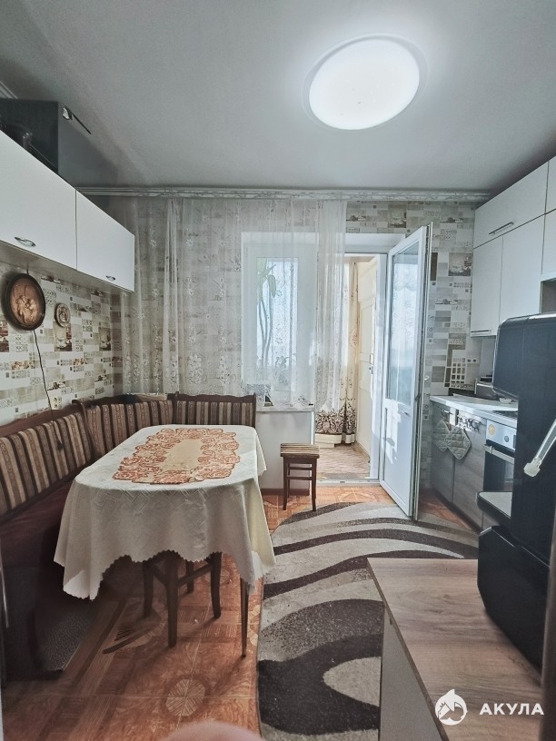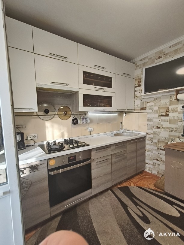 Кухня с газовой плитой и оставшимся кухонным гарнитуром — готовьте с удовольствием.