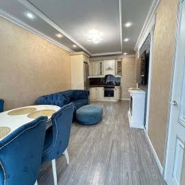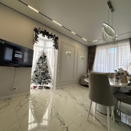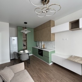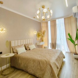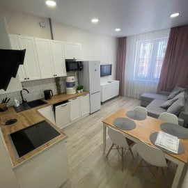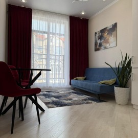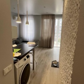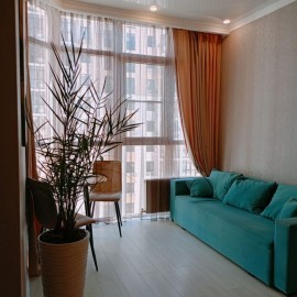 Объект №176149. Продается уютная квартира с дизайнерским ремонтом в Жилом Комплексе комфорт класса Чёрное море., в монолитном доме 2022 года постройки. Просторная комната с панорамными окнами 15м 2 выходит во двор, обеспечивая тишину и спокойствие. В квартире выполнен...