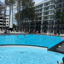 Объект №159016. Перфекционисты оценят!!! Один из лучших апарт комплексов. На территории шикарный ландшафтный дизайн: высокие сосны, под линеечку подстрижен газон, идеального оформления территории, подогреваемый бассейн, детские зоны, шезлонги и зонтики, рядом озеро с...