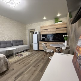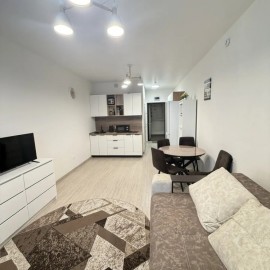Объект №11365 Просторная, светлая студия на 18 этаже с современным ремонтом, выполненном с душой и вниманием к деталям. Вся необходимая мебель уже в комплекте — заезжайте и живите! Кухня, функциональная зона для отдыха или работы, оборудованный санузел, прихожая, уютная...
