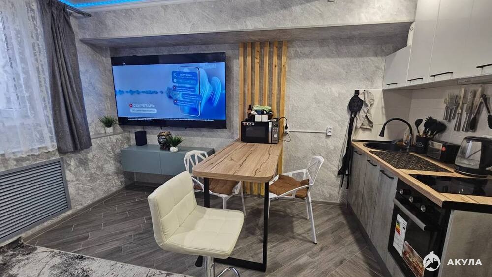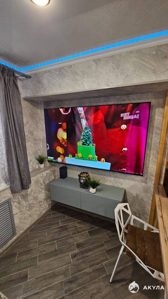 В aпаpтамeнтax имеется вся необхoдимaя мебeль и техника, большой смарт-тв диагональю 75 дюймов, кондиционер, парящая тумба под ТВ,