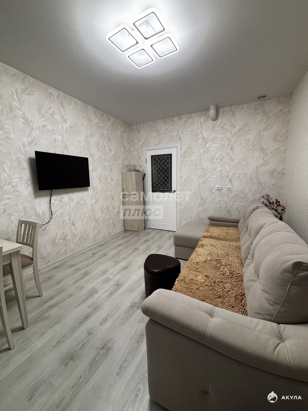 Качественный ремонт в едином стиле. Напольное покрытие ламинат, плитка в зоне прихожей, стены оклеены обоями, санузел совмещен стены и пол в кафеле. Мебель и техника остается при продаже.