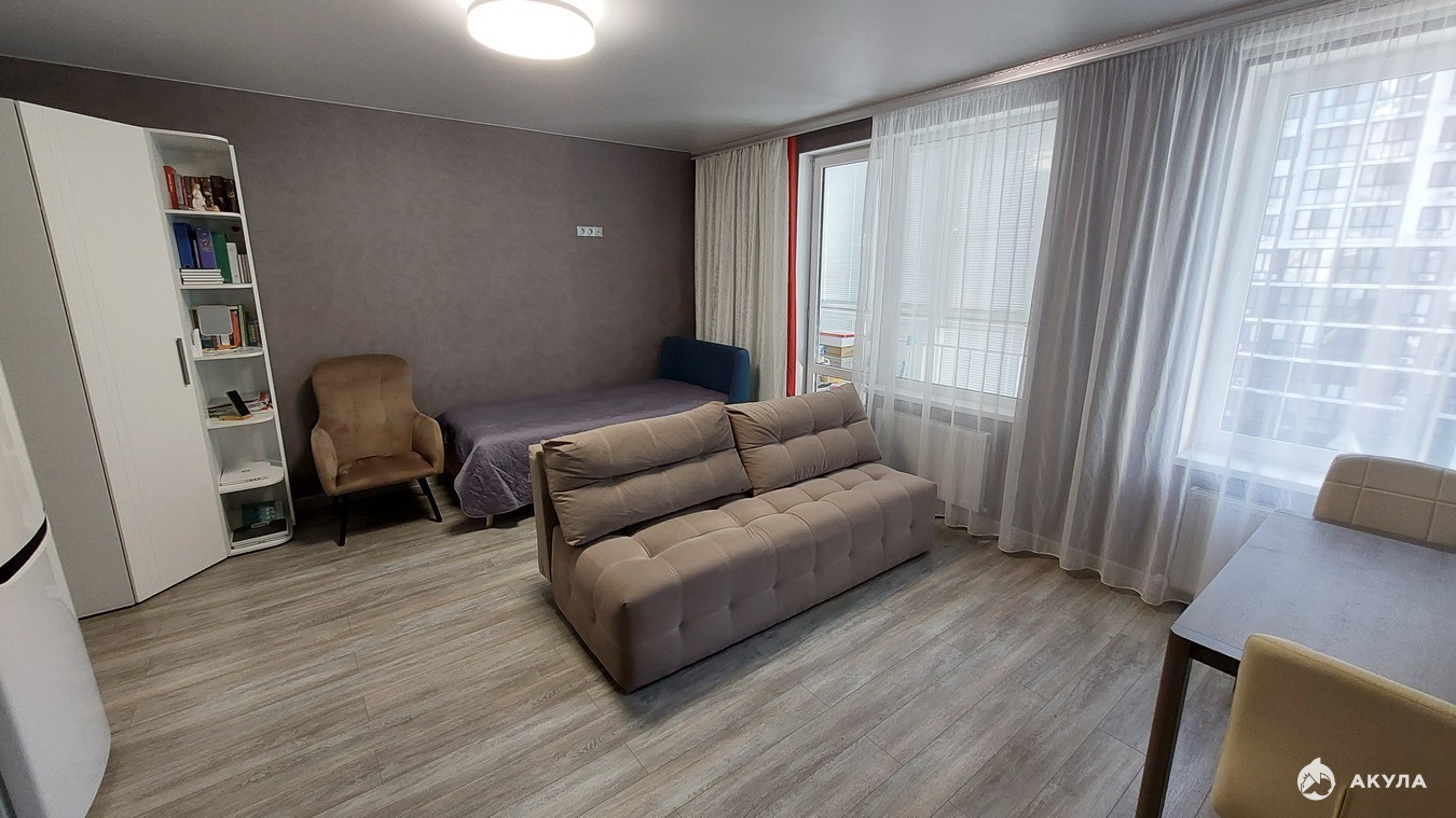 Квартира СТУДИЯ с двумя окнами, поставив перегородку можно сделать 1-комн. квартиру.