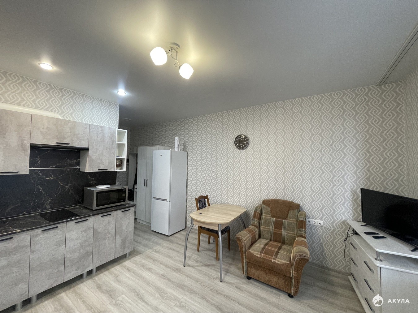 В продаже квартира-студия с современным ремонтом. Мебель и техника остается будущему собственнику. Отопление в квартире центральное (от собственной газовой котельной), что позволяет начать отопительный сезон и его закончить, не дожидаясь выполнения погодных нормативов