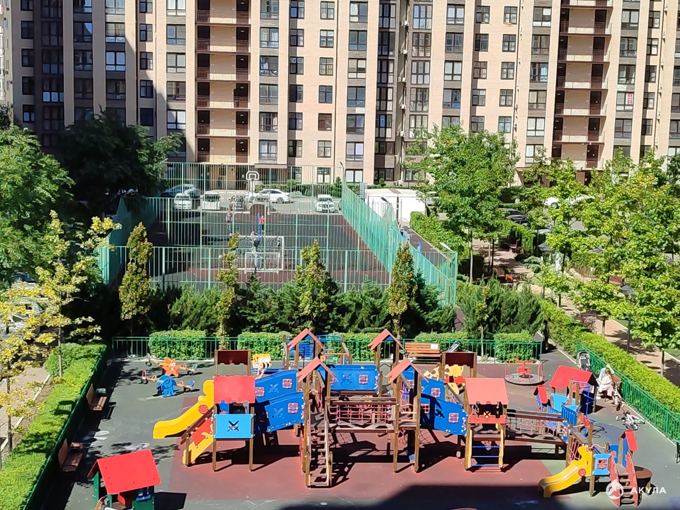 современные детские площадки с безопасным покрытием — ваши дети будут в восторге, а вы сможете расслабиться неподалёку, наблюдая за их играми;