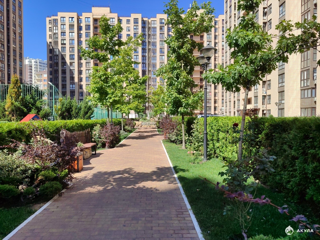 Представьте: вы просыпаетесь под ласковые лучи утреннего солнца, завариваете ароматный кофе и выходите на небольшой балкон (или просто подходите к окну) — перед вами открывается живописный вид на уютный двор с продуманным ландшафтным дизайном: аккуратные газоны, цветущие клумбы, тенистые аллеи и изящные фонари, которые по вечерам создают особую атмосферу уюта.