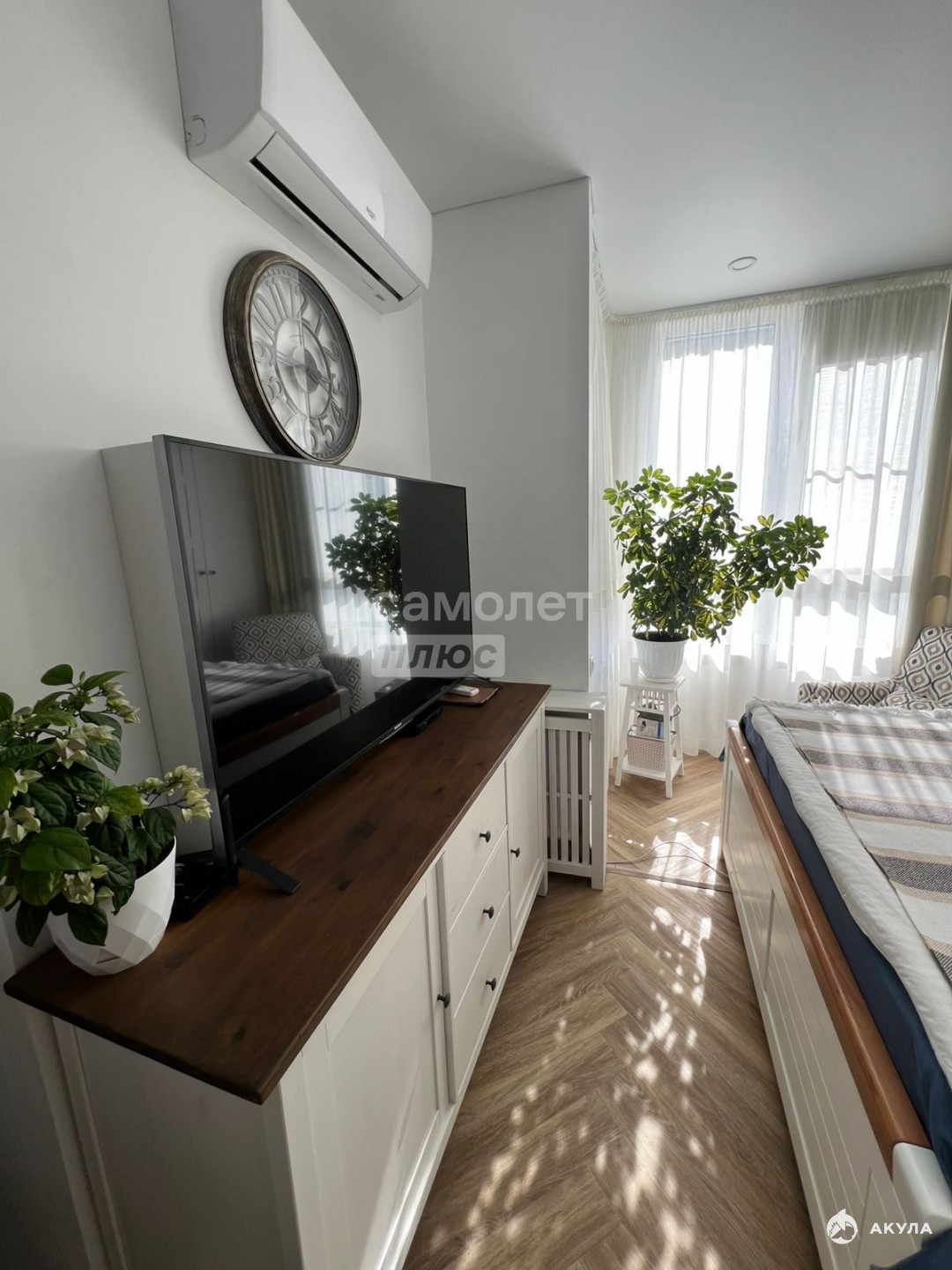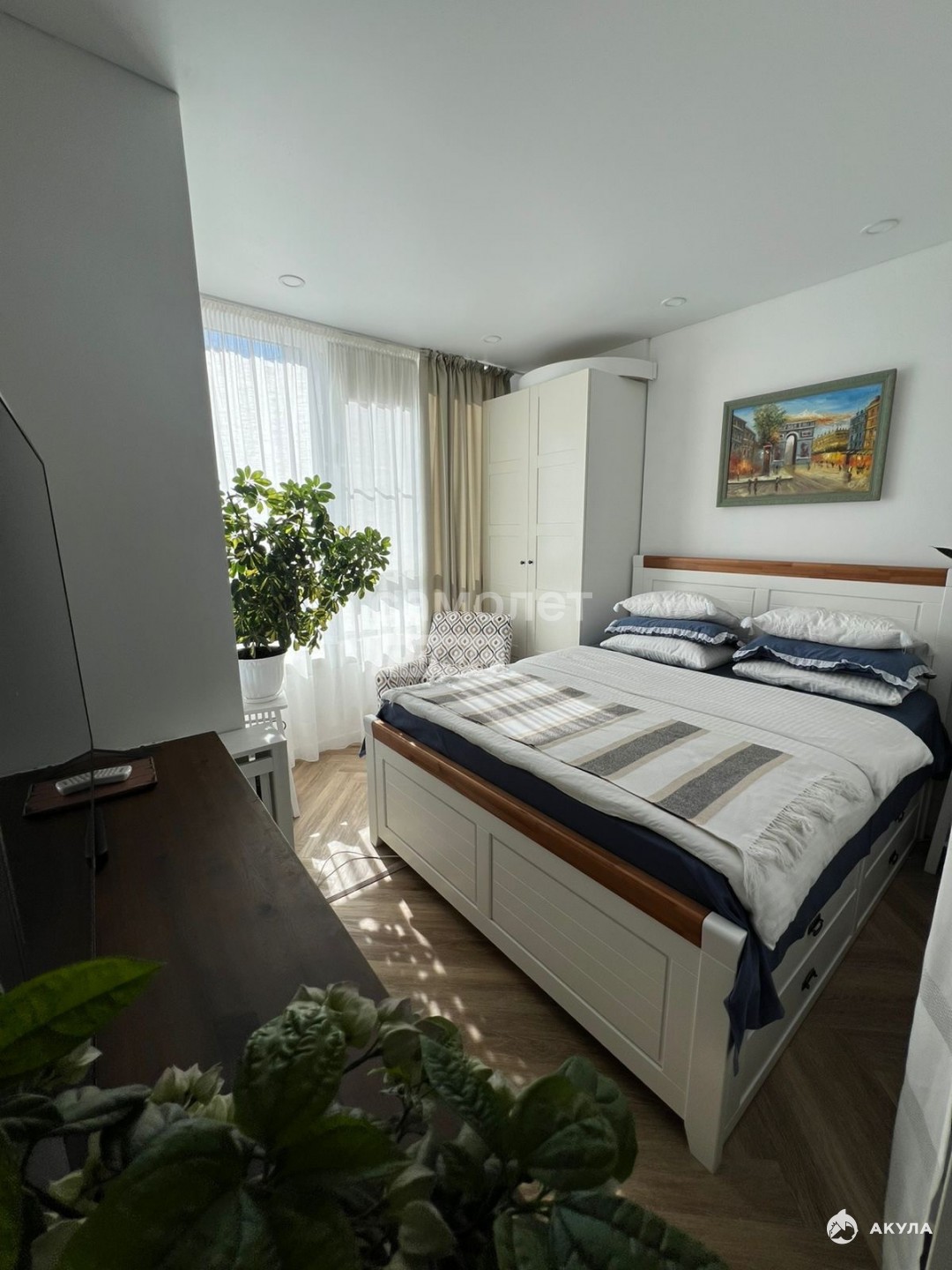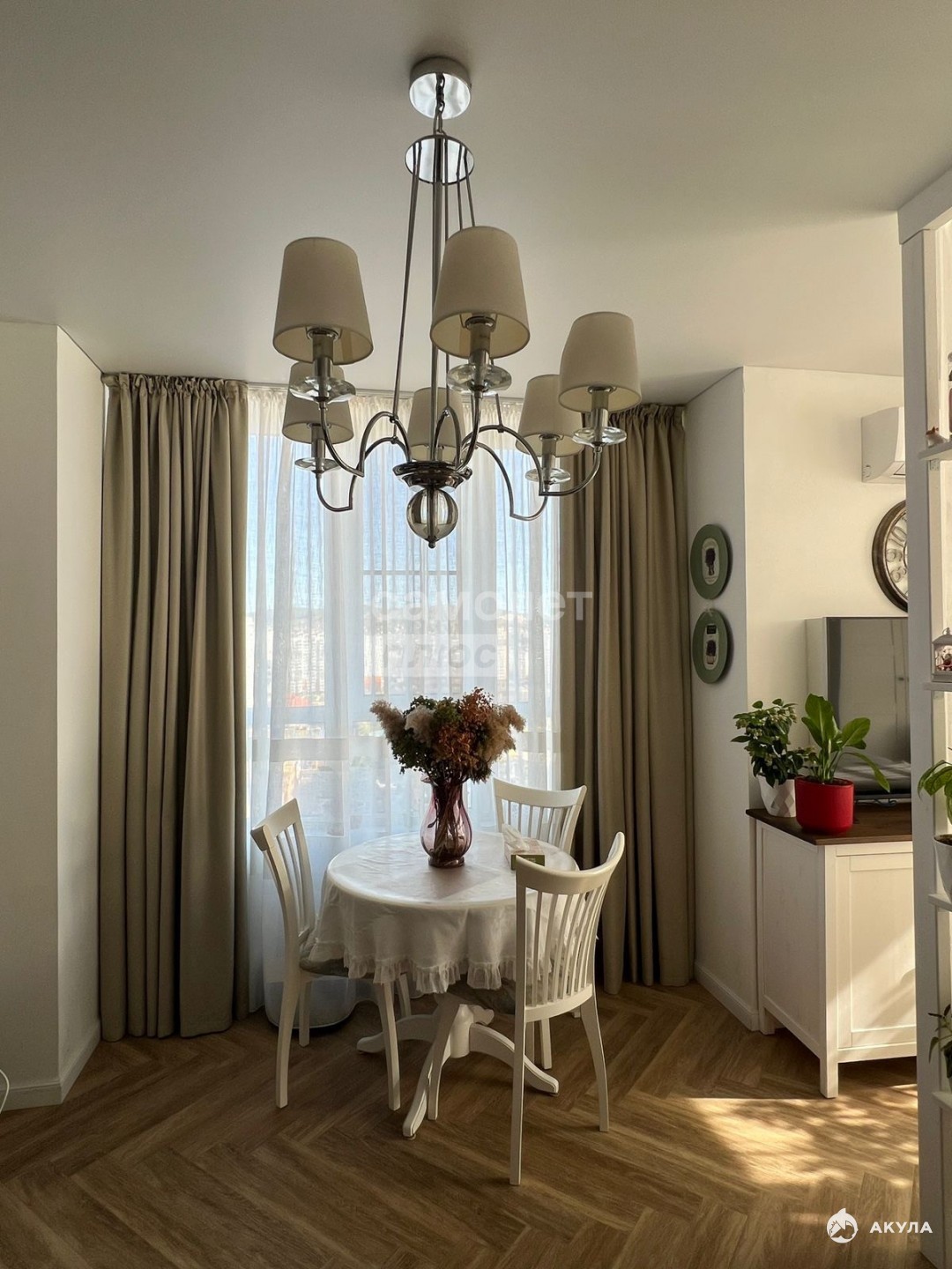 В квартире остается встроенная кухня и техника (духовой шкаф, посудомоечная машина, варочная индукционная плита, вытяжка, 2 кондиционера.