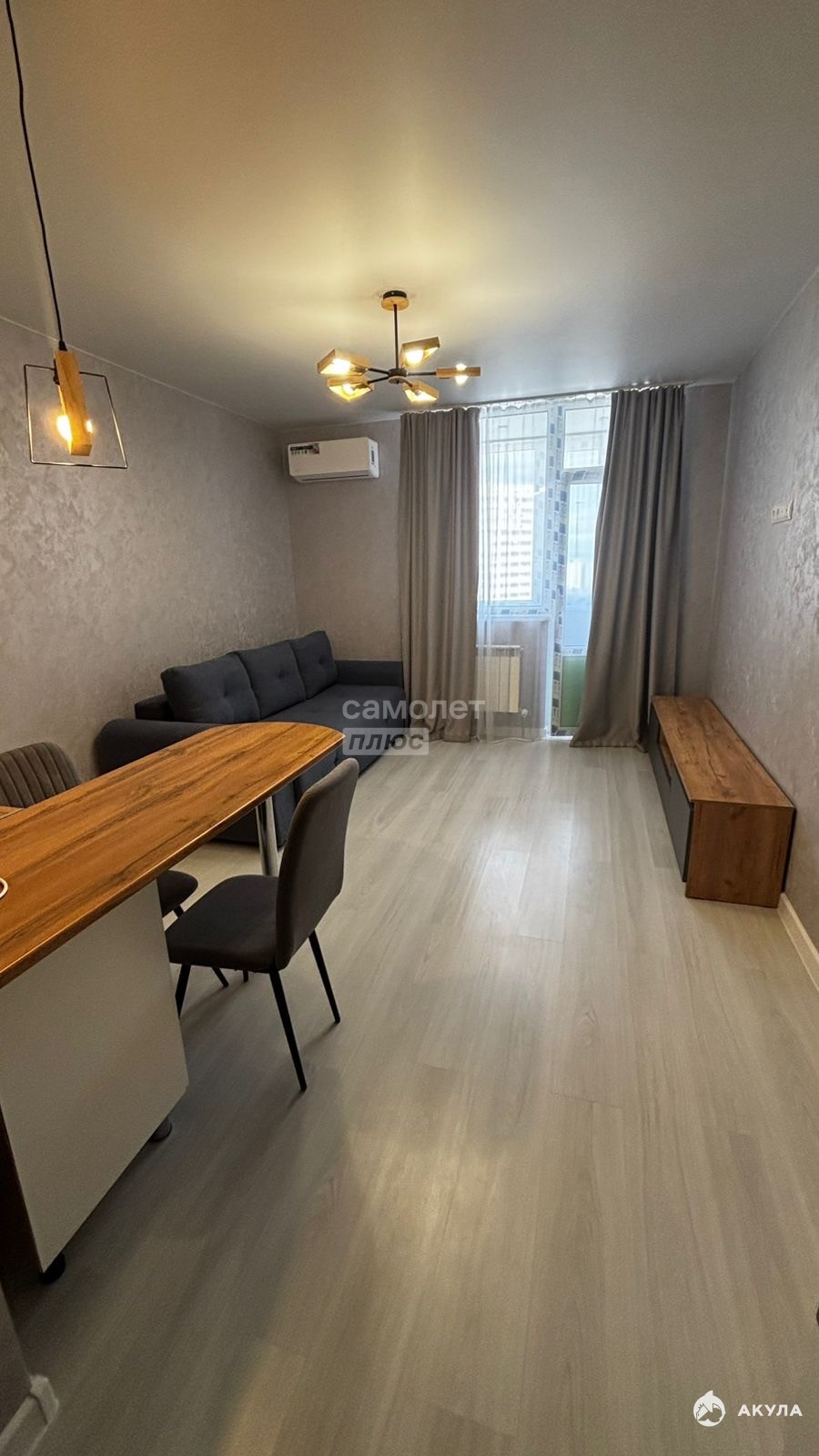В квартире сделан качественный дизайнерский ремонт:Кухонная барная стойкаНапольное покрытие дорогой ламинатСовмещенный санузел, установлена качественная сантехника В квартире остается техника и мебель