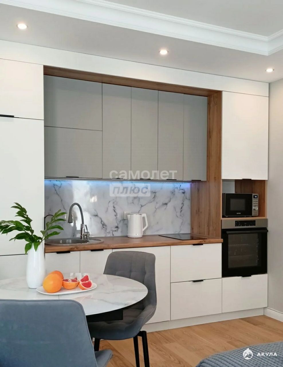 Кухня, сделанная с учетом органомики со всей необходимой встраиваемой техникой (холодильник, посудомоечная машина варочная панель, духовой шкаф, микроволновая печь, чайник.